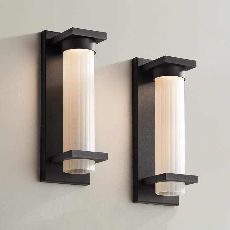 Possini Euro Kathleen 14" High Sand Black LED Wall Sconce Set of 2