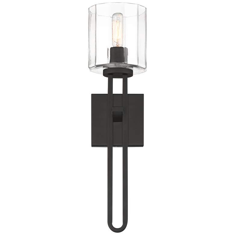 Minimalist and modern, the set of two Katrina wall sconces from Possini Euro Design® showcases an eye-catching combination of strong lines and gentle curves. An understated black finish provides an understated backdrop with a faceted clear glass shade housing the design's bulb. The Katrina wall sconce is damp location rated for indoor use, and can be mounted with the light facing up or down.