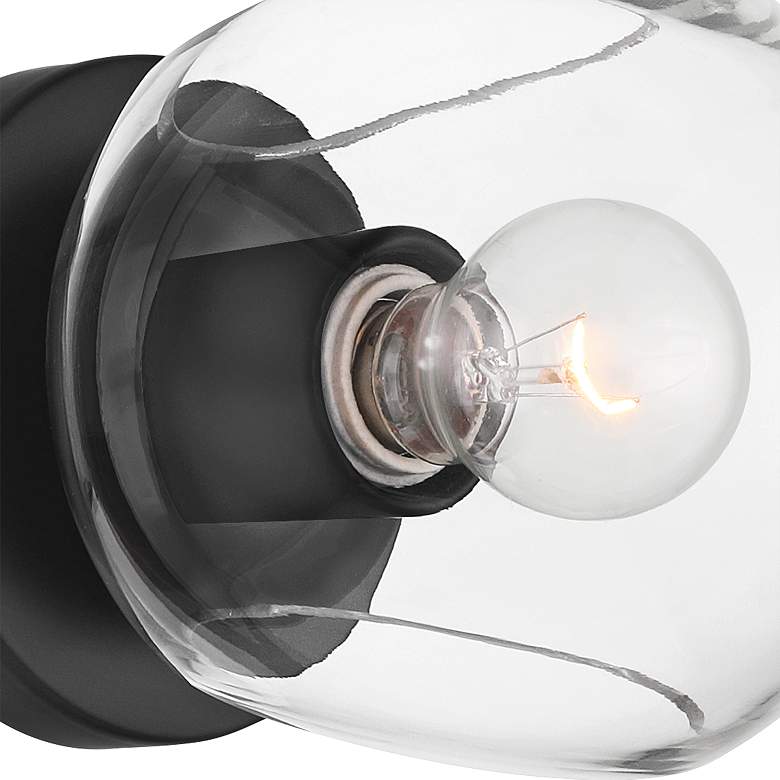 Bring the simplicity of modern industrial design to your home with the Michaelis lighting collection from the Possini Euro Design® brand. Prioritizing functional versatility, this wall sconce design features a clear glass shade surrounding the single bulb, enhanced by a black finish backplate for contrast. Pair the Michaelis collection with vintage style bulbs for maximum effect. The glass is designed with carved circular openings for visual interest. Damp location rated for indoor use, this piece is ideal for any room in your home.
