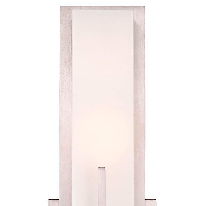- Satin nickel finish. White glass rectangular shade.