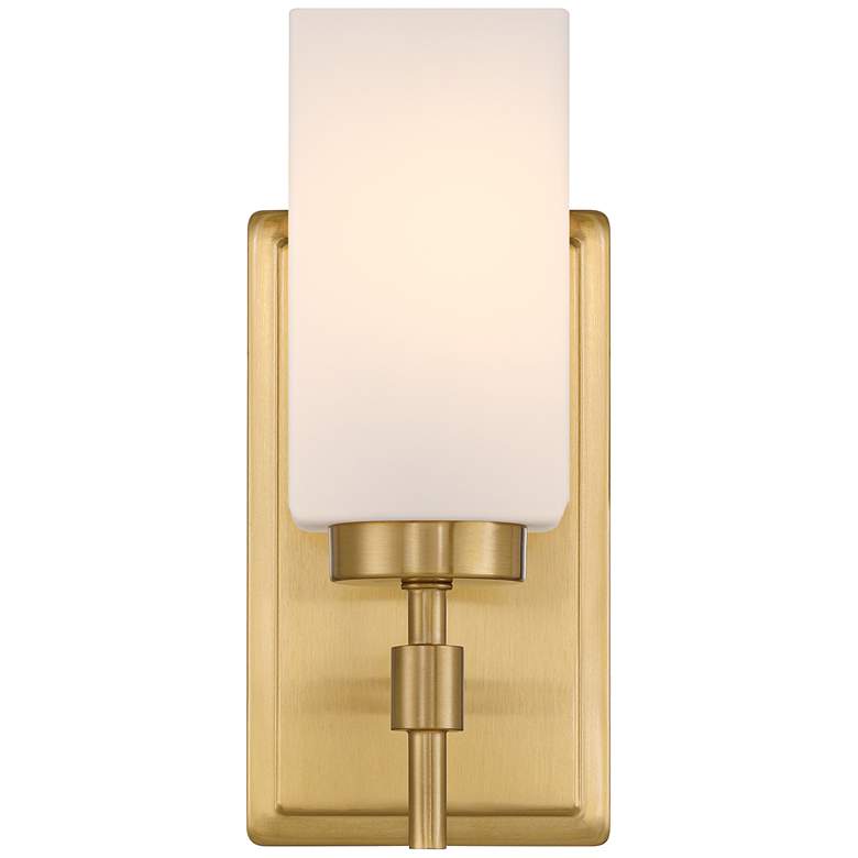 Liven up your home with the minimalist modern charm of the Salo lighting collection, presented by the Possini Euro Design® brand. This vibrant gold finish design featured a white opal glass shade for warm, diffused illumination. Damp location rated for indoor use, this wall sconce can seamlessly mingle with any room in your home. The Salo collection is designed to be mounted with the light facing either up or down.