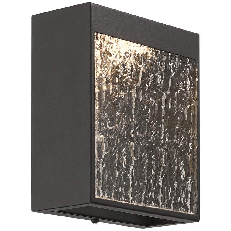 Ready for anything, the Sofia LED wall sconce is presented by the Possini Euro Design® brand, perfect for bringing understated modern charm to your home. This black finish design boasts a hammered glass cover, creating a rainfall-like effect, adding to the overall beauty of your home. A built-in LED module illuminated with energy-efficient lighting. The Sofia wall sconce is wet location rated for indoor use.