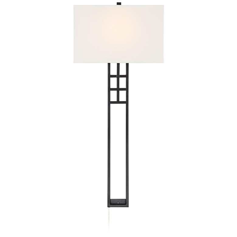 Possini Euro Ventano 38" High Black Metal Plug-In Wall Lamps Set of 2