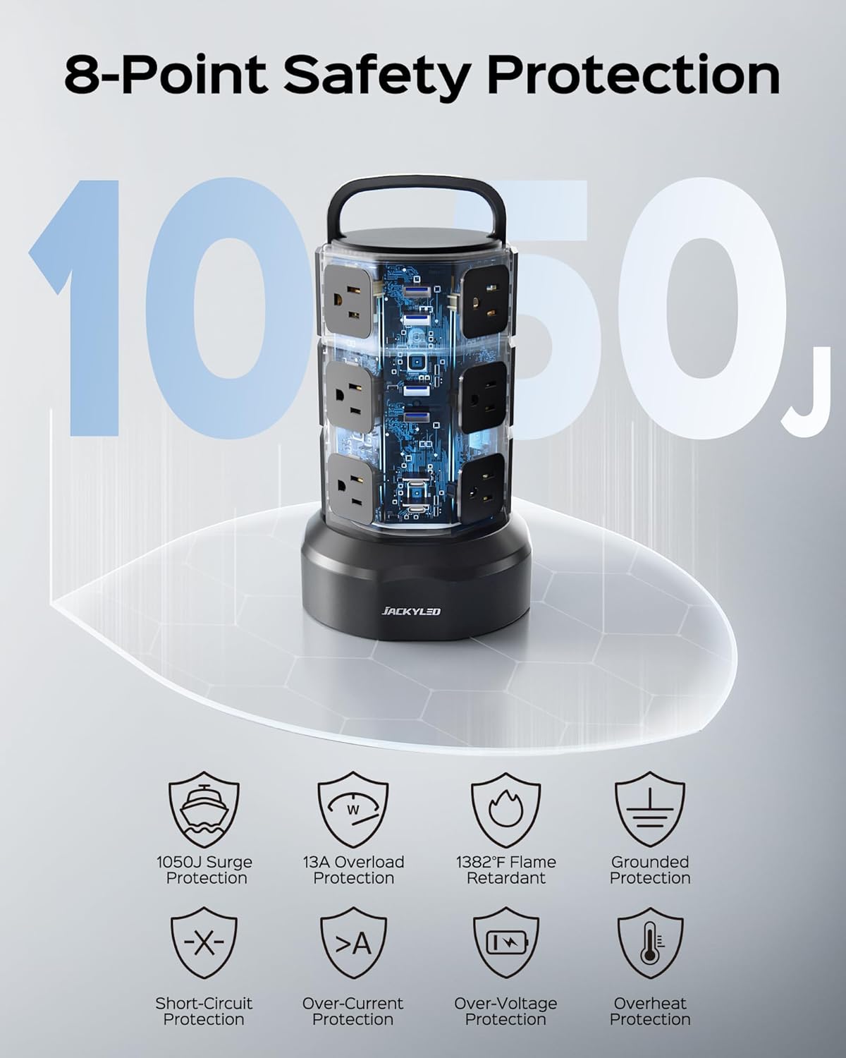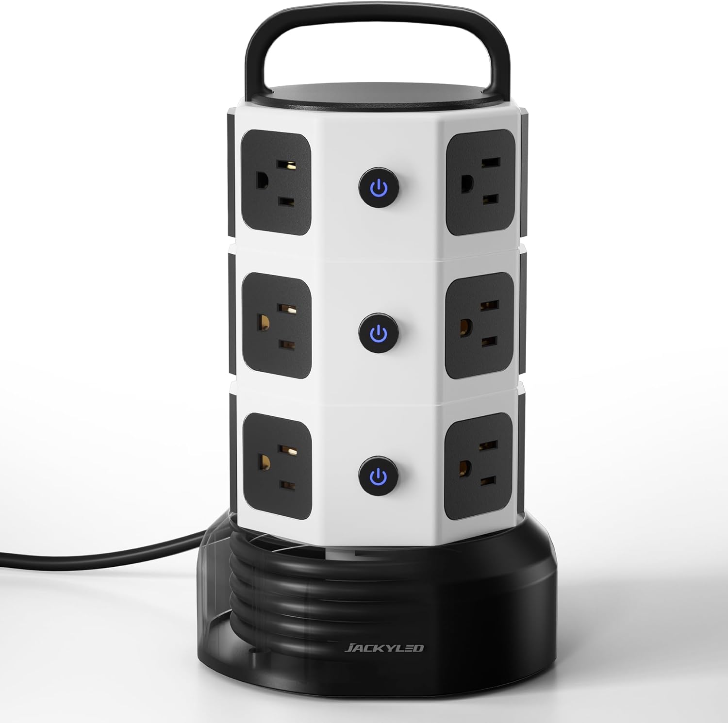 Power Strip Tower Surge Protector, JACKYLED 12 Outlets 6 USB (2 USB C) Charging Station, Extension Cord with Multiple Outlets,... Read more Read more