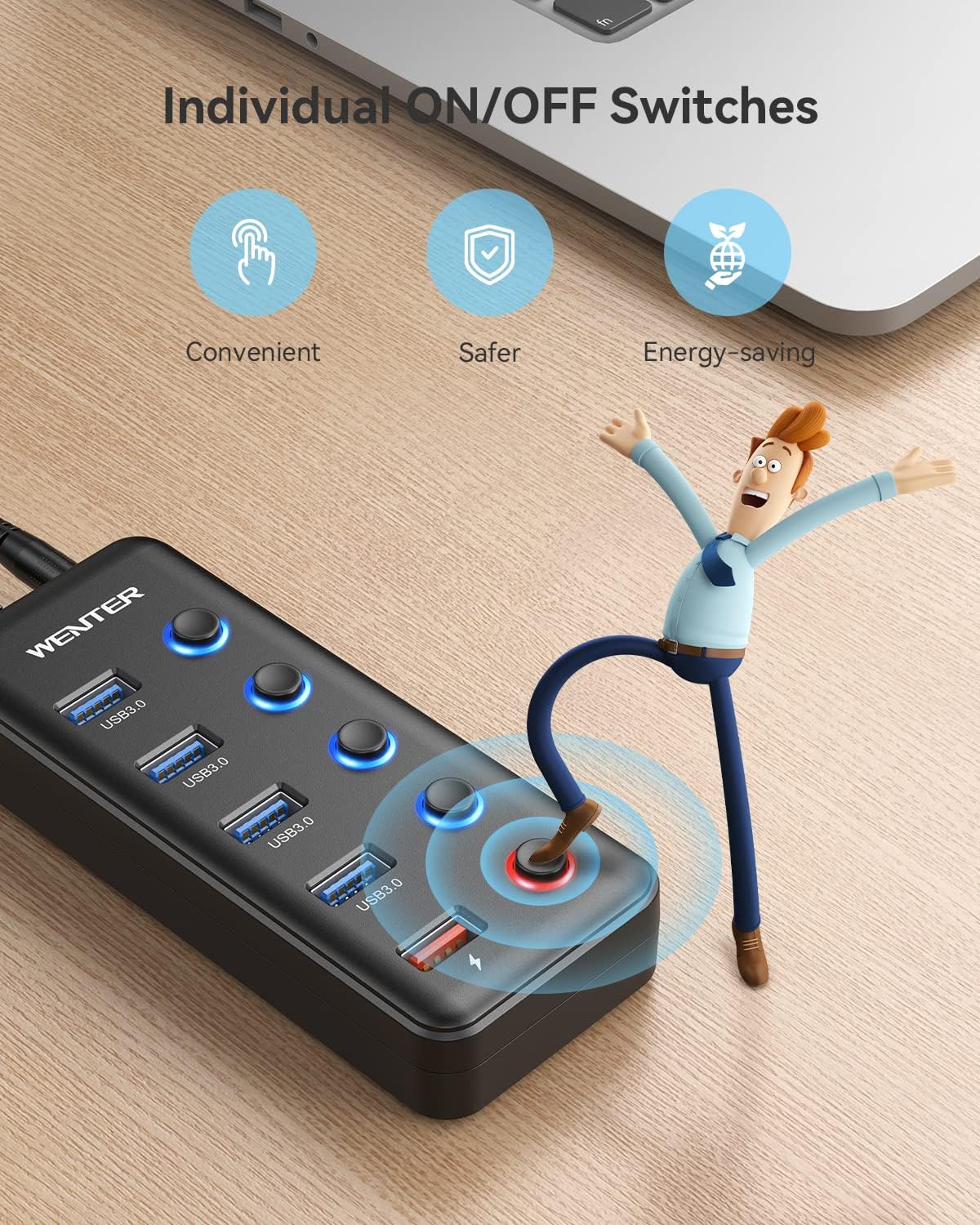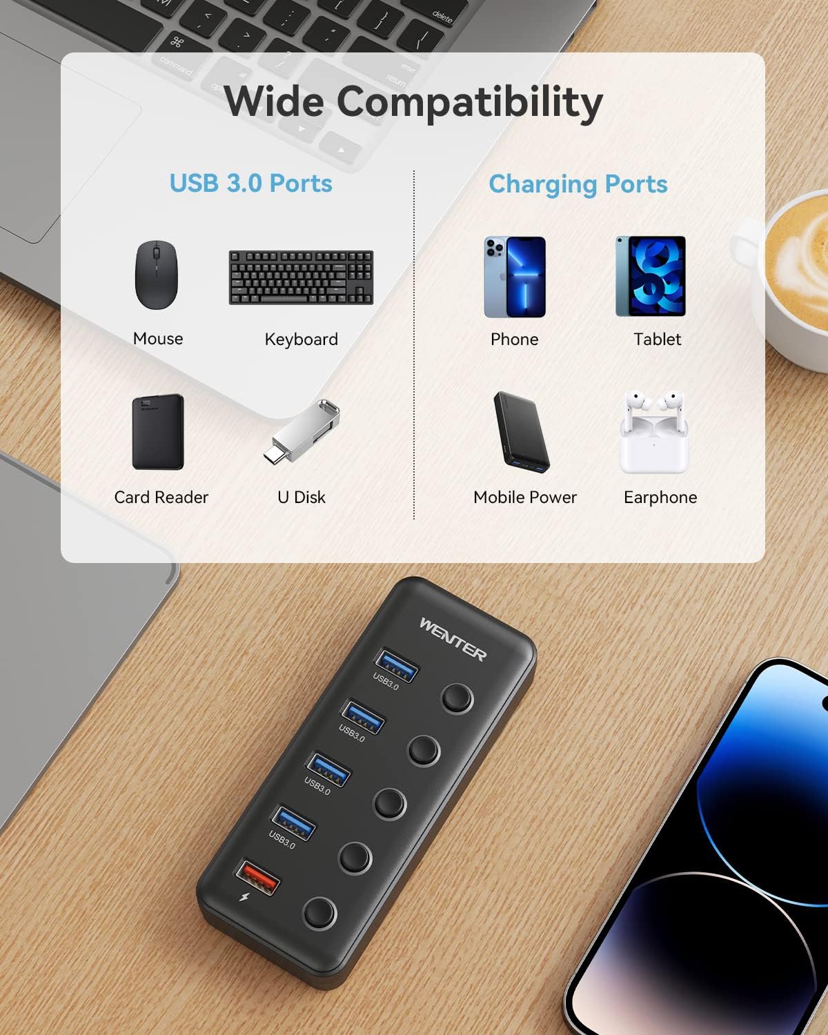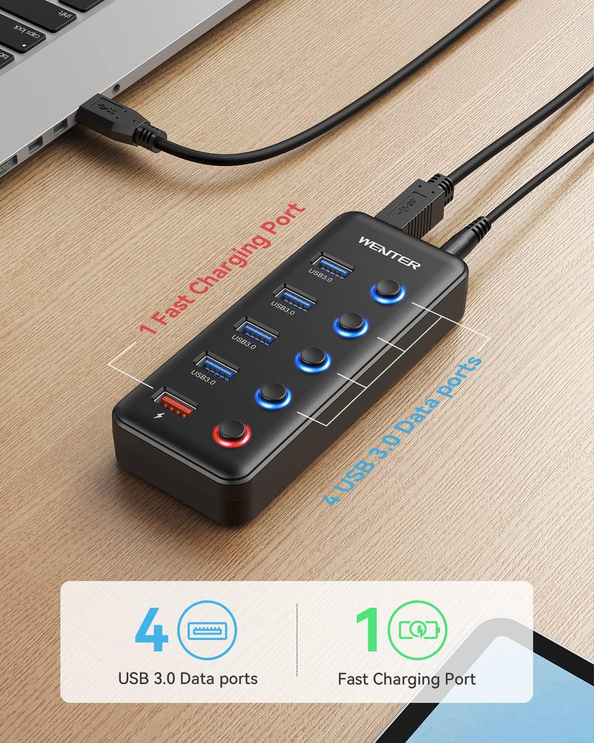 Powered USB Hub, Wenter 5 Ports USB 3.0 Hub