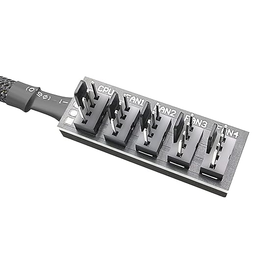 PWM Fan Hub – 1 to 5 Way, 4-Pin/3-Pin, 12V Desktop, Sleeved 15.7" Extension Cable