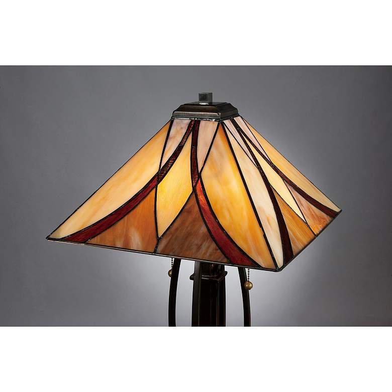 - Mission Arts and Crafts table lamp with Tiffany-style art glass. Design by Quoizel lighting.