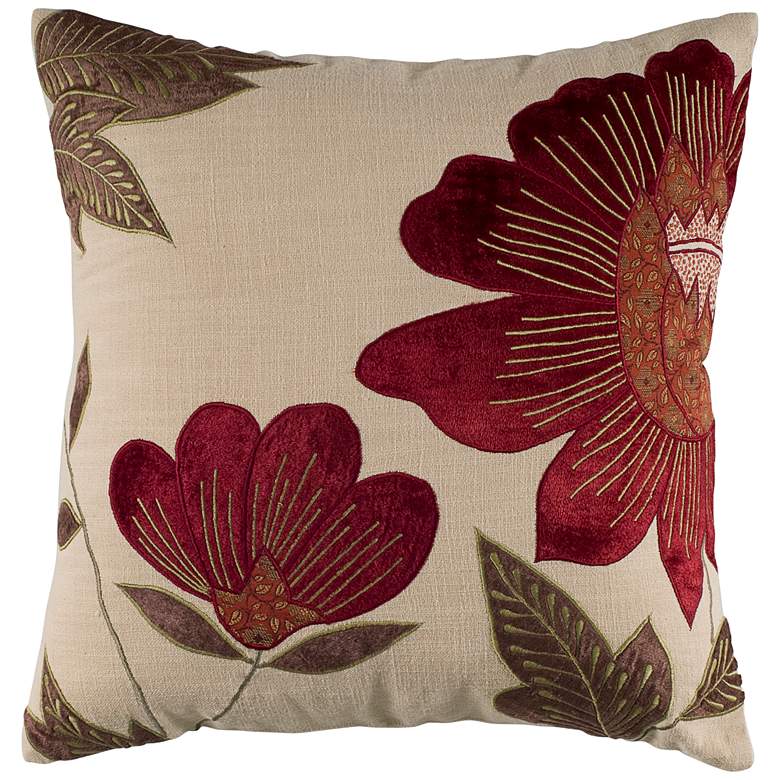 Red and Beige Floral 18" x 18" Throw Pillow