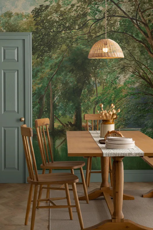 Repeat pattern wallpaper is the traditional style wallpaper as we’ve always known it. A repeat design that is printed onto rolls, and the number of rolls is determined by the size of the surface that you’re covering.