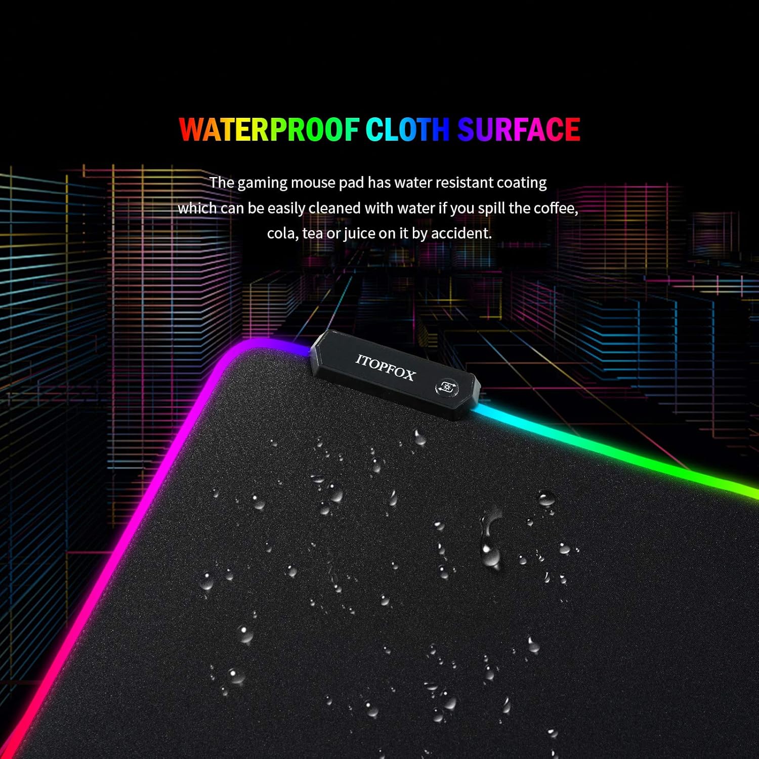 - Super Huge Mat With Waterproof Material - This LED mouse mat is 31.5"*11.8"(L*W) which offers enough space for your keyboard and mouse; Waterproof material provide water resistance coating on the mat which can be easily wipe up it with water while some tea/coffee/juice spill on mat