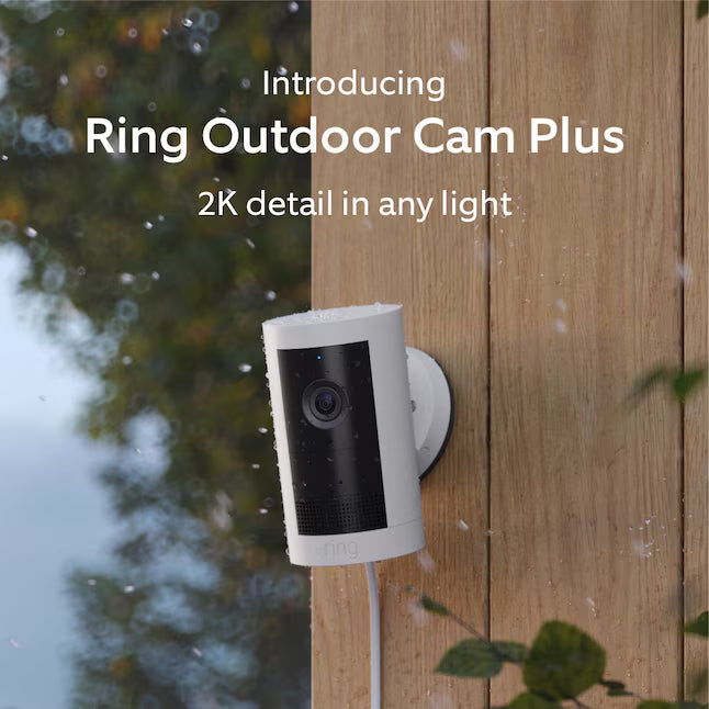Ring Outdoor Cam Plus, Plug-In with 2K Video and Ring Vision, Low-Light Sight, and Mount-Anywhere Versatility (White)