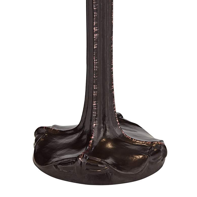 - Bronze finish metal base crafted to look like a tree trunk and roots. 7-foot long cord.