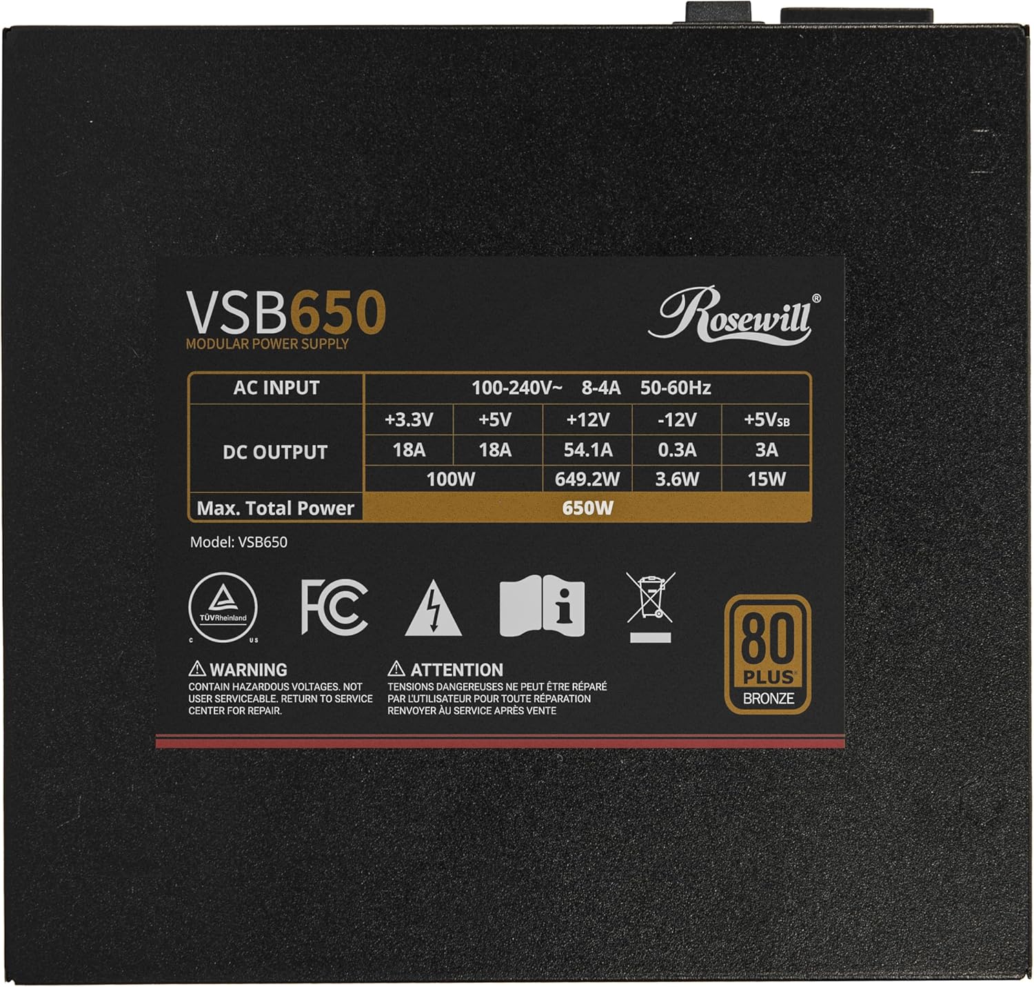 Rosewill VSB 650W 80+ Bronze, ATX 3.0 & 3.1 Compatible, Semi-Modular Power Supply, PCIe 5.1 12V-2x6 Connector, 105°C/221°F Japanese Capacitor,... Read more Read more