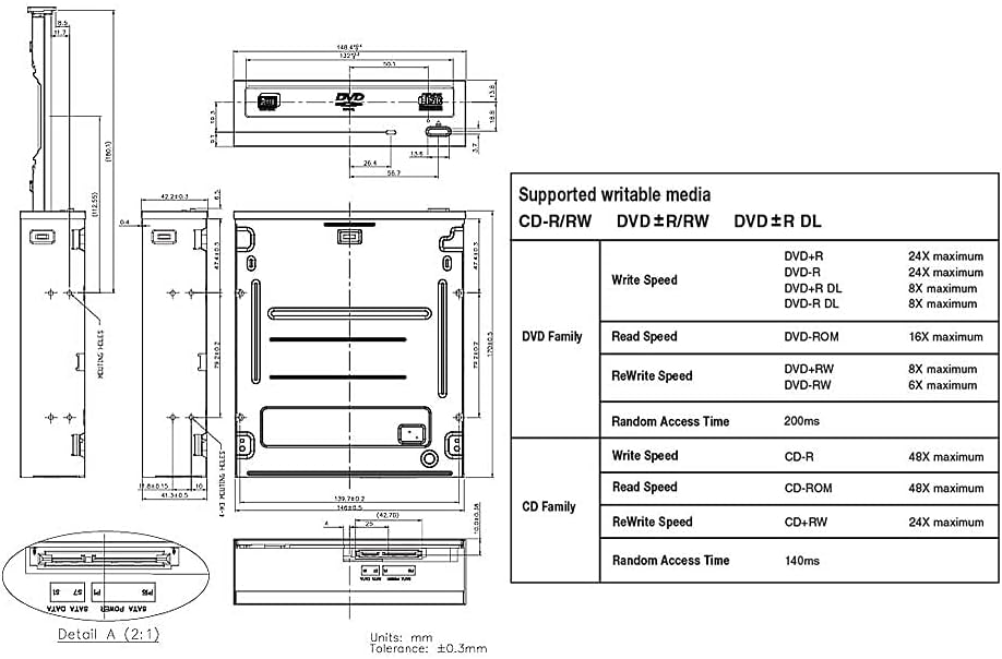 - CD-R/RW, DVD-R/RW/ +R/RW +/-R DL M-DISC/+M SL read and write compatible, CD Family and DVD-ROM read compatible.