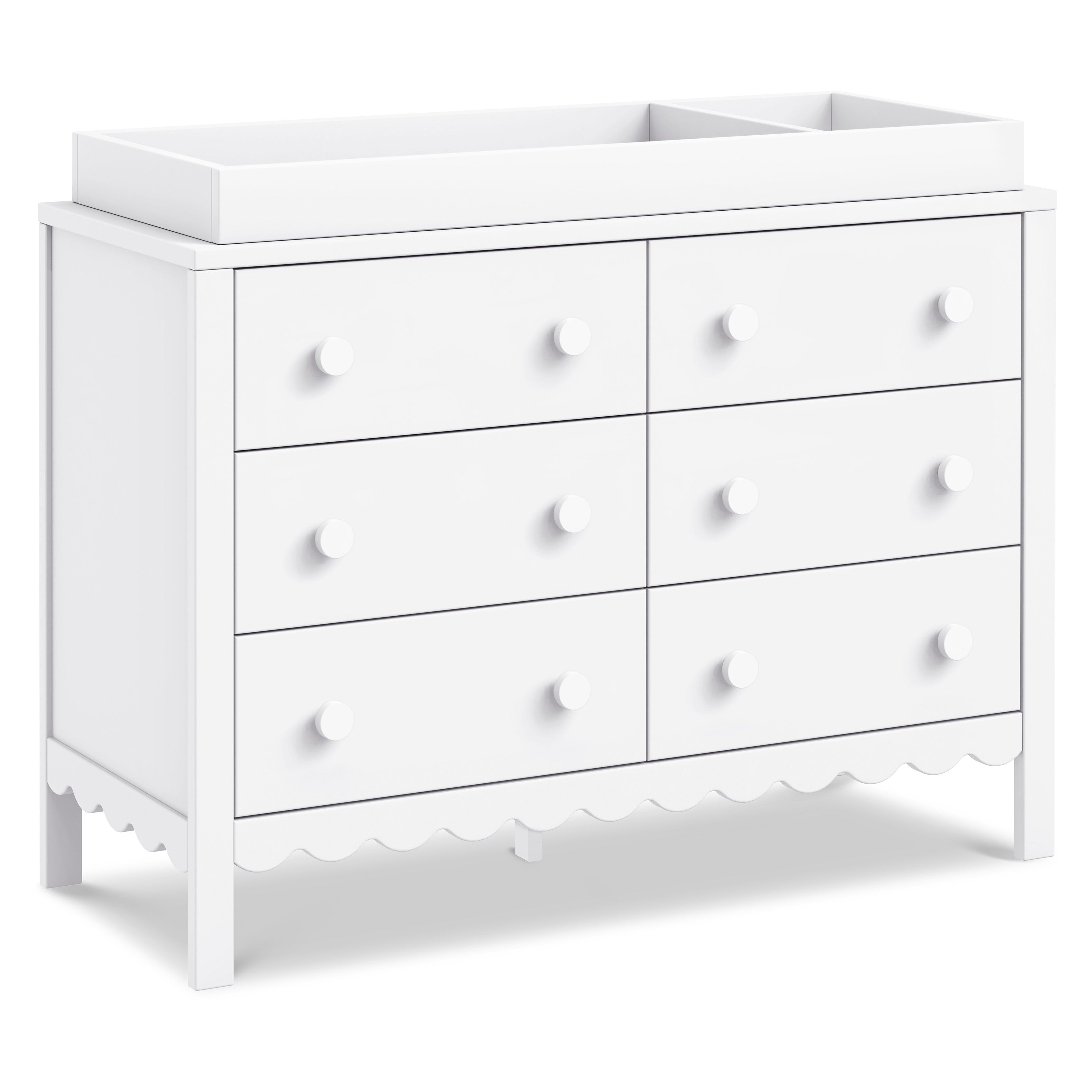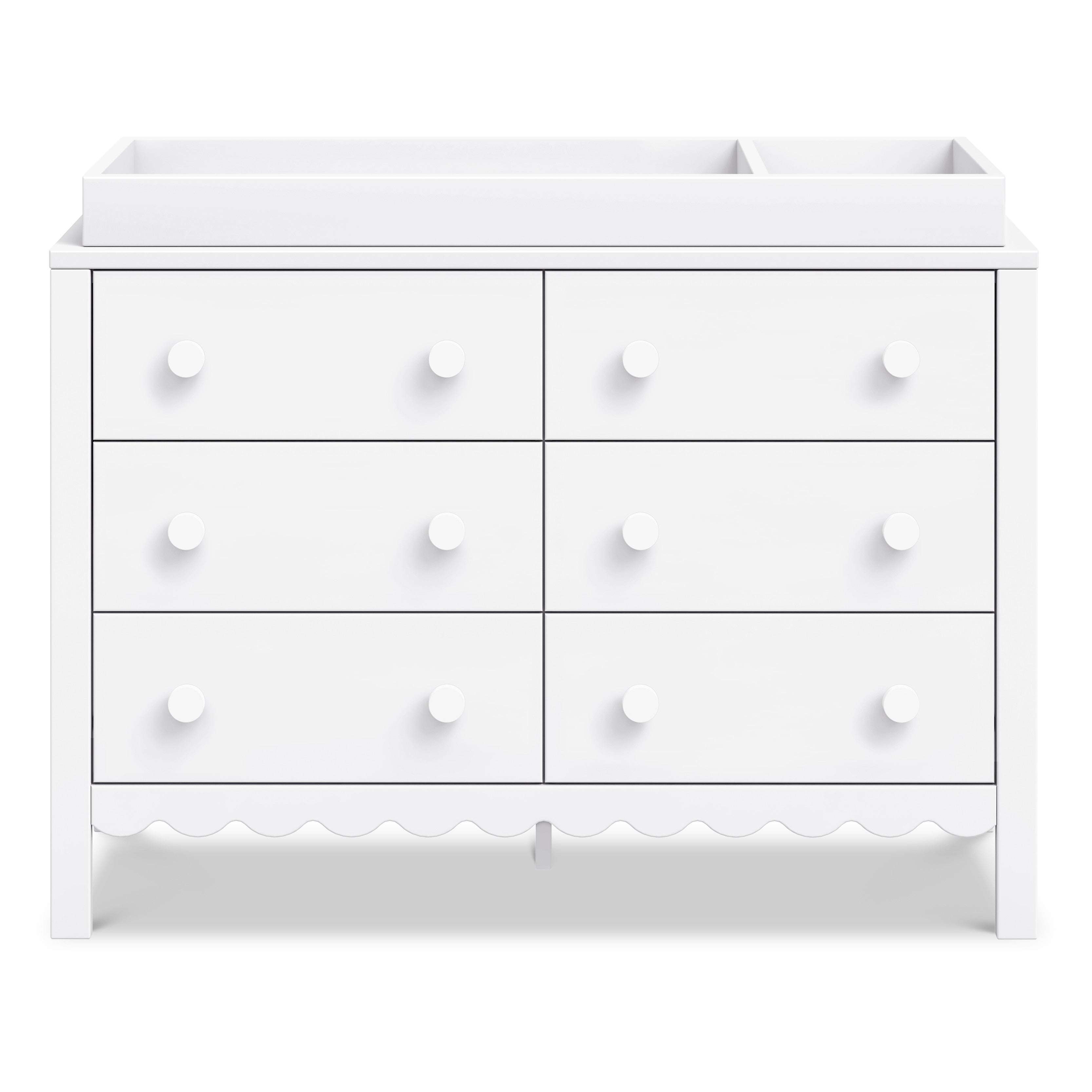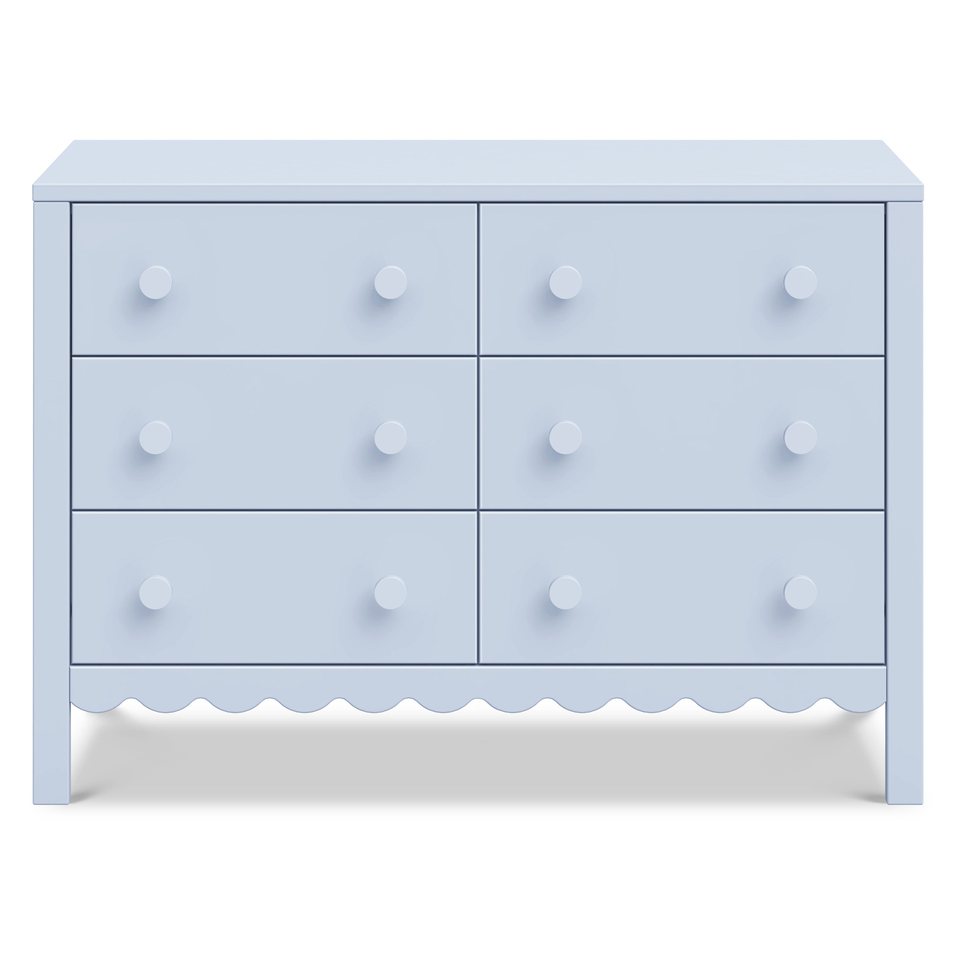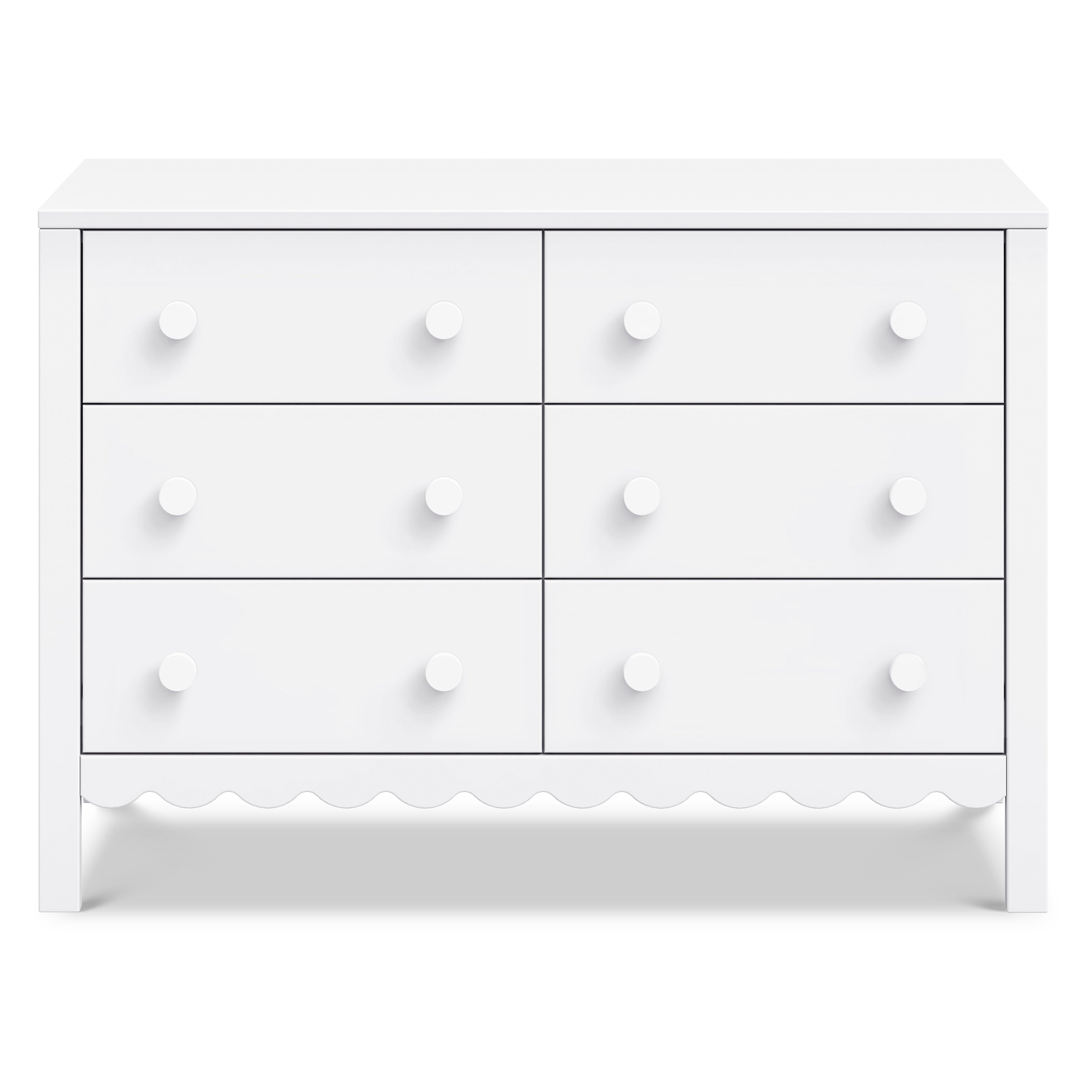 From its charming scallop detailing to its playful colors, the Sammy Scallop 6-Drawer Dresser easily transitions with your little one from baby to teen. Paired with its matching 4-in-1 convertible crib and bookcase, the Sammy Scallop Collection ensures that every moment with your little one is filled with style and joy.