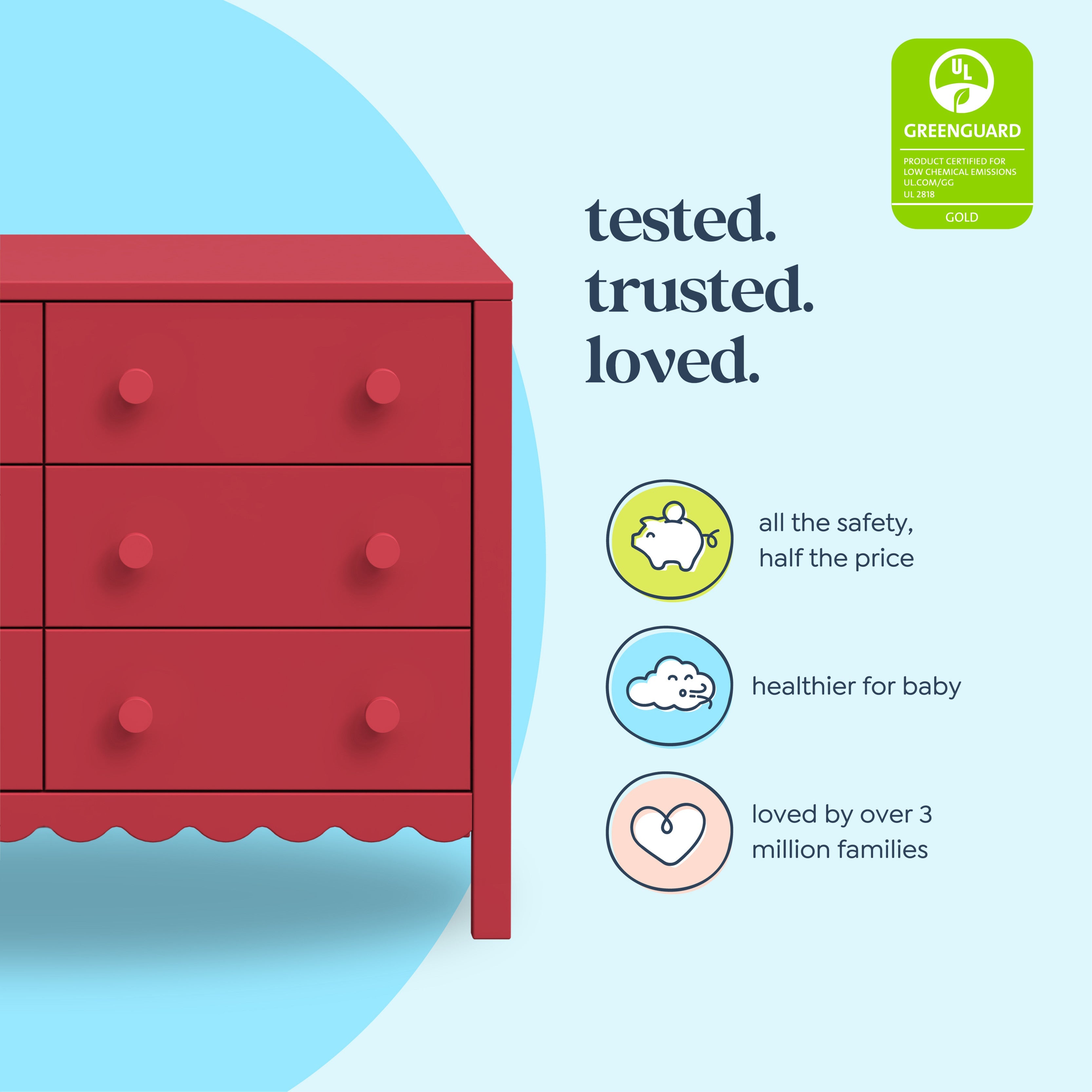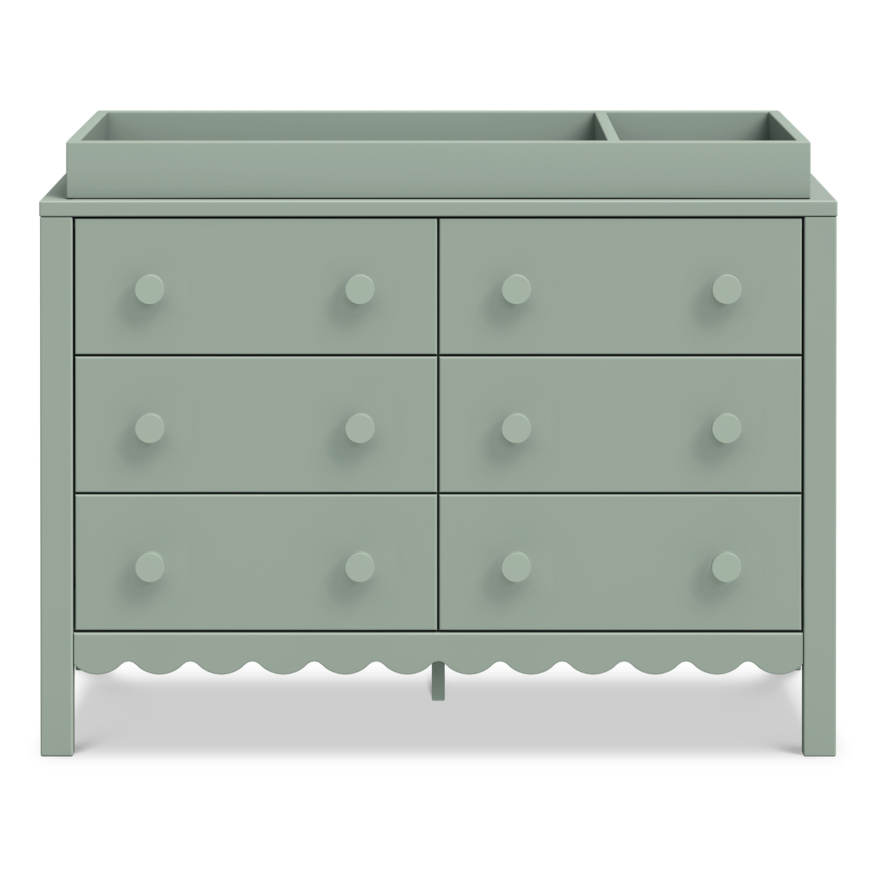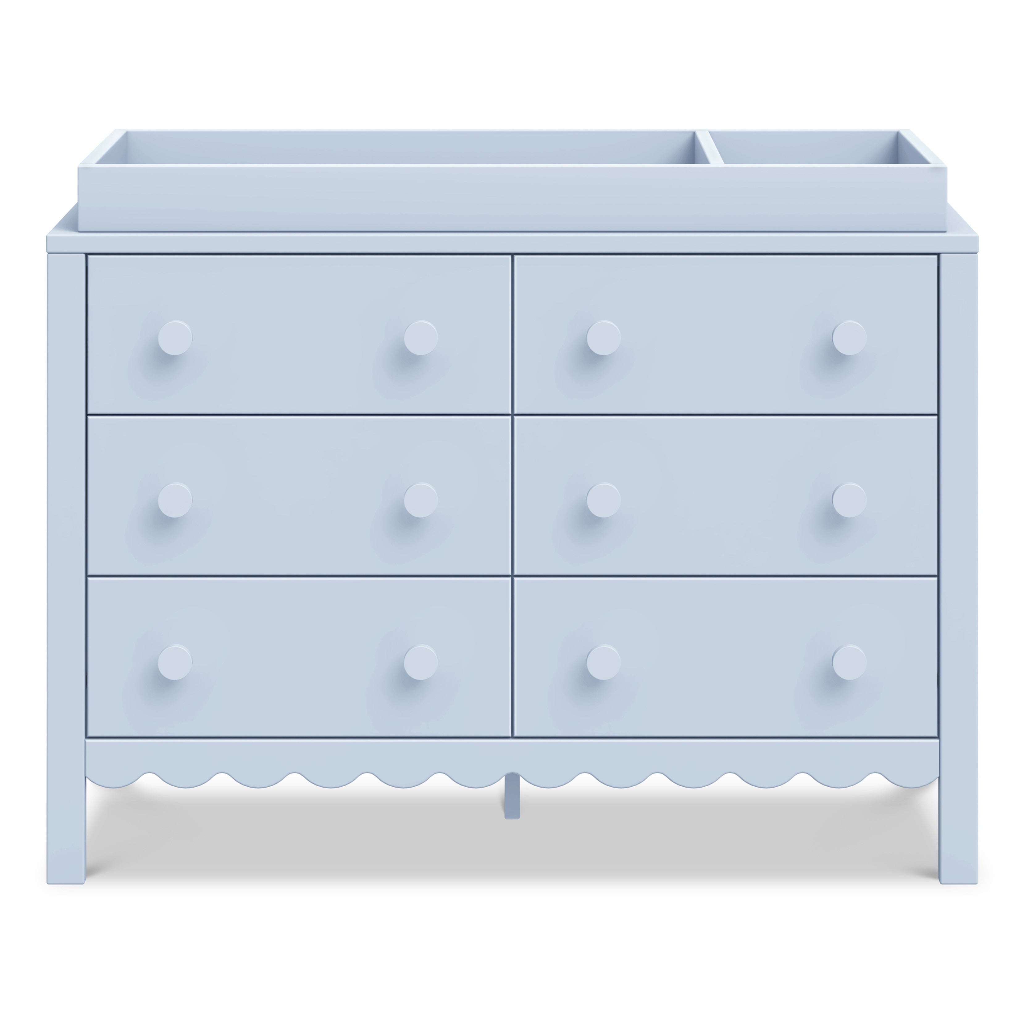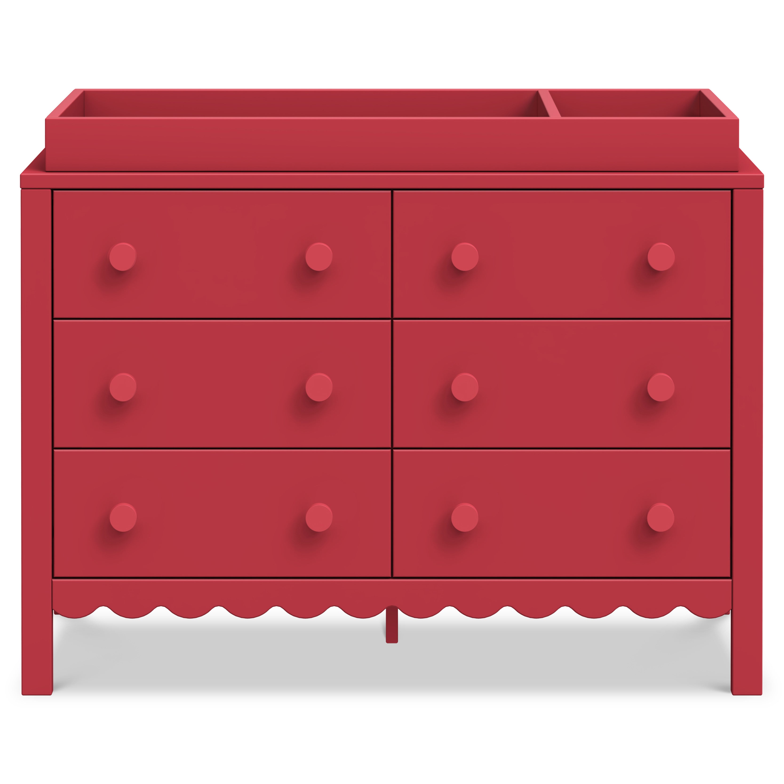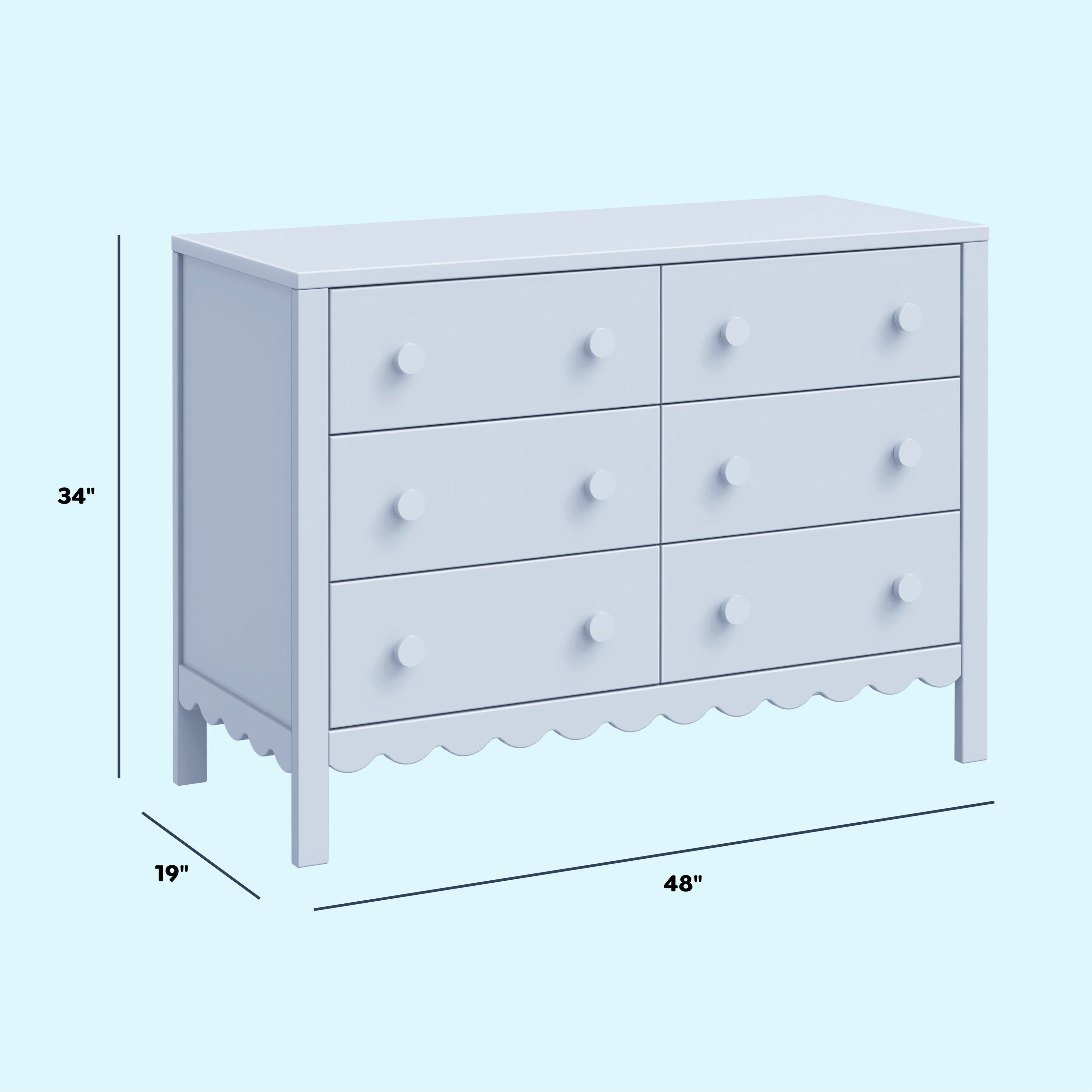 From its charming scallop detailing to its playful colors, the Sammy Scallop 6-Drawer Dresser easily transitions with your little one from baby to teen. Paired with its matching 4-in-1 convertible crib and bookcase, the Sammy Scallop Collection ensures that every moment with your little one is filled with style and joy.