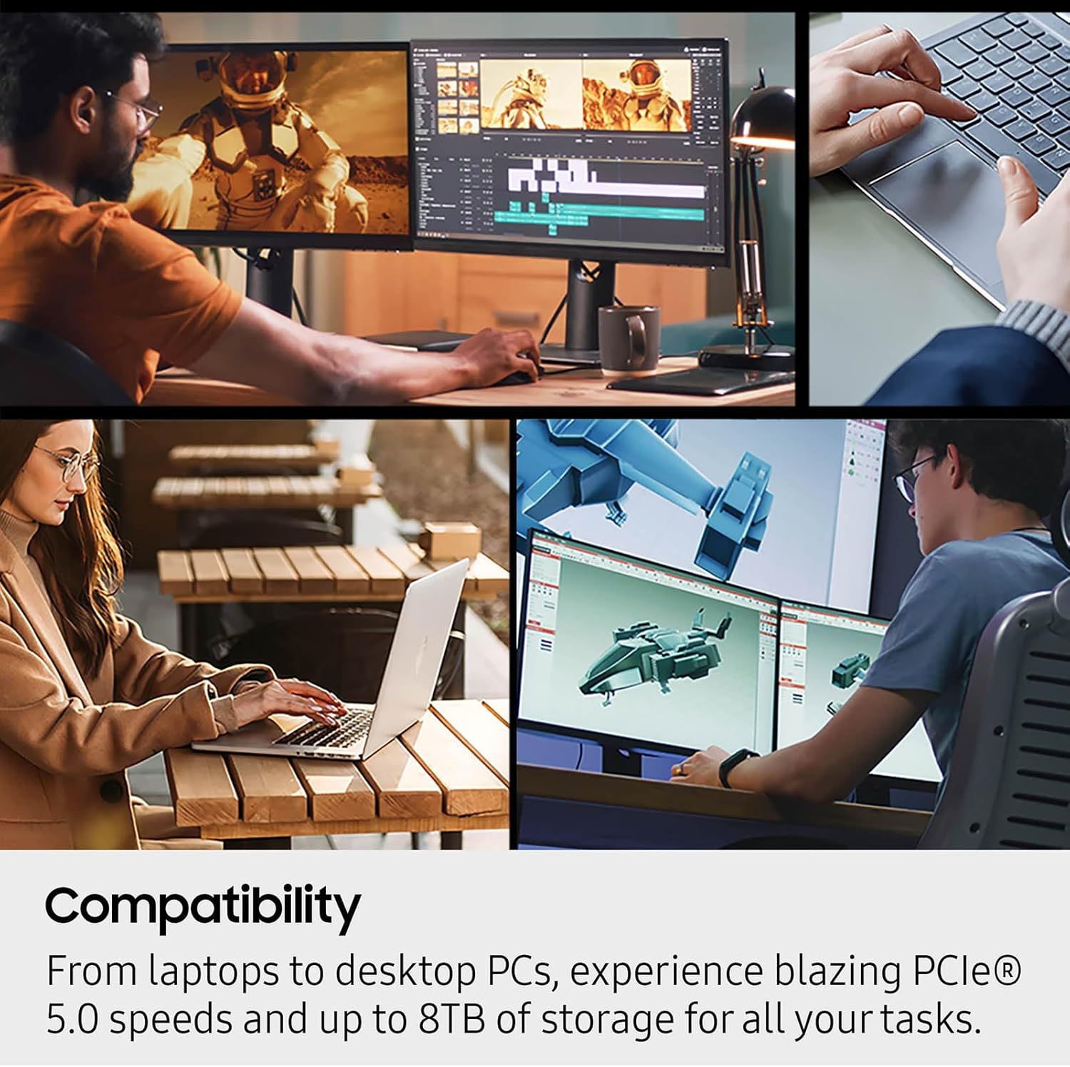 - SPEED, WHENEVER YOU NEED: From laptops to desktop PCs, experience blazing PCIe 5.0 speeds and up to 8TB of storage. Perfect for video editing, gaming, and creative tasks, with the compatibility to match your device.