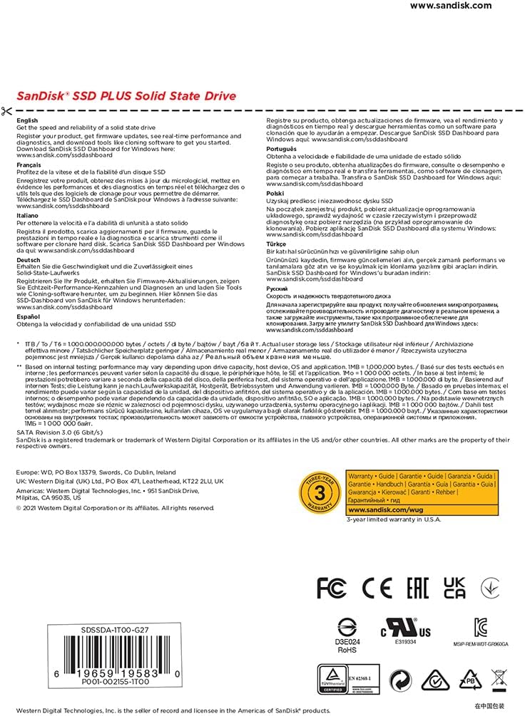 SanDisk SSD PLUS 1TB Internal SSD - SATA III 6 Gb/s, 2.5"/7mm, Up to 535 MB/s - SDSSDA-1T00-G27