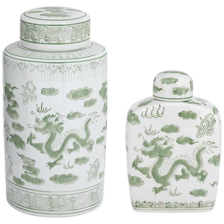 Sansui Green and White 2-Piece Ceramic Ginger Jar Set