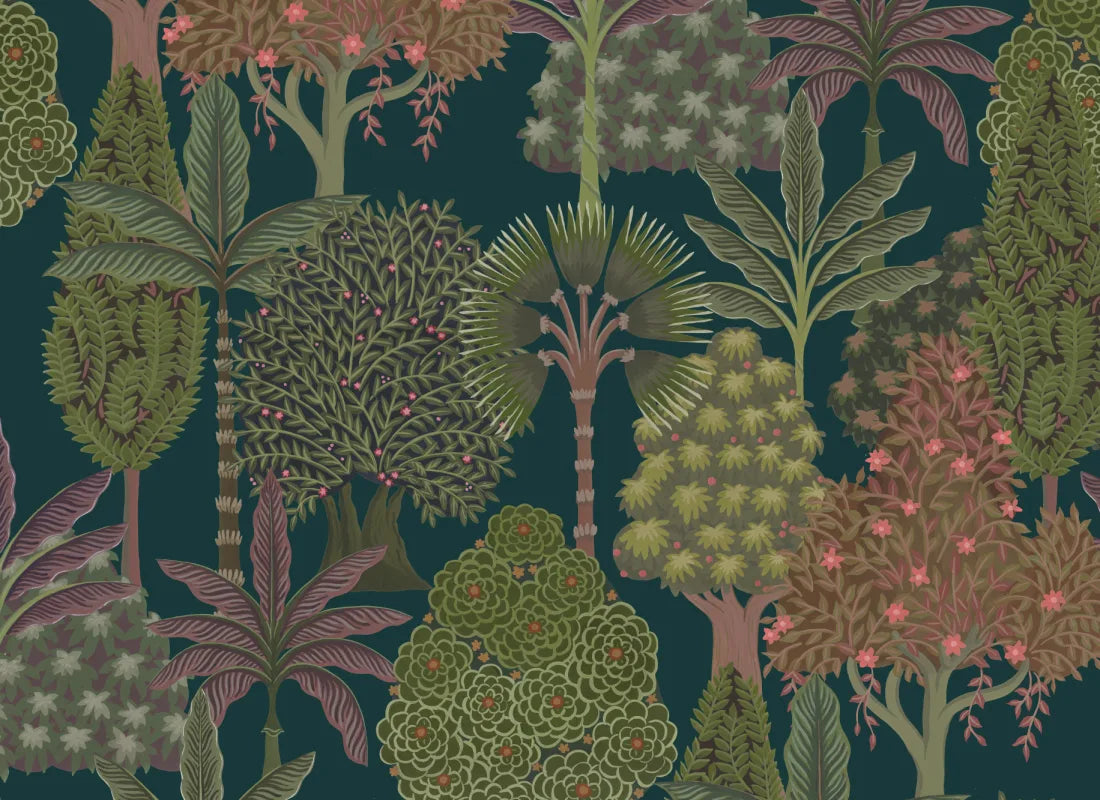 Repeat pattern wallpaper is the traditional style wallpaper as we’ve always known it. A repeat design that is printed onto rolls, and the number of rolls is determined by the size of the surface that you’re covering.