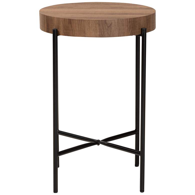 Savion 15 3/4" Wide Walnut Brown Wood Black Metal End Table