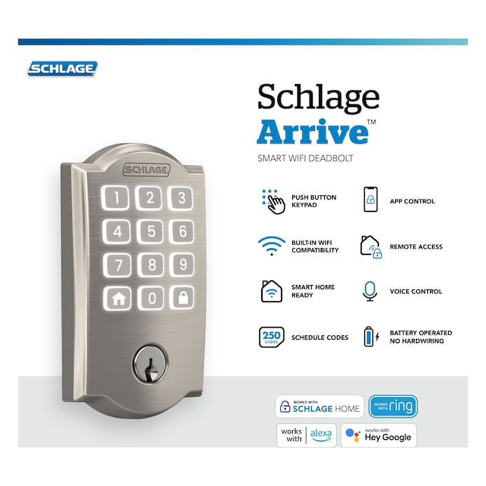 CONTROL AWAY FROM HOME: With built-in WiFi, you can easily and securely connect your Schlage Arrive Deadbolt to your home WiFi network with the Schlage Home app to have confidence that your lock is secure when you’re away from home