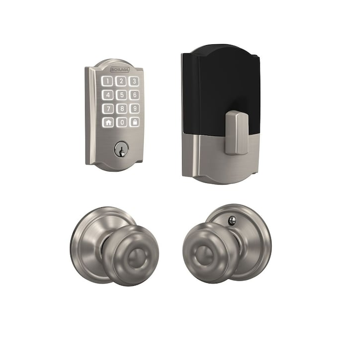 Schlage Arrive Camelot Satin Nickel Electronic Deadbolt and Georgian Door Knob Bundle
