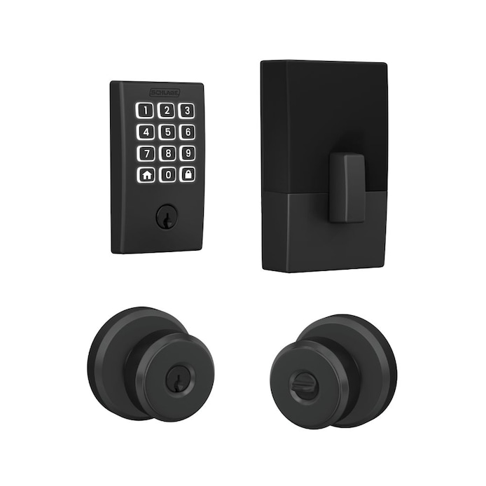Schlage Arrive Century Matte Black Electronic Deadbolt and Bowery-Greyson Keyed Entry Door Knob Bundle