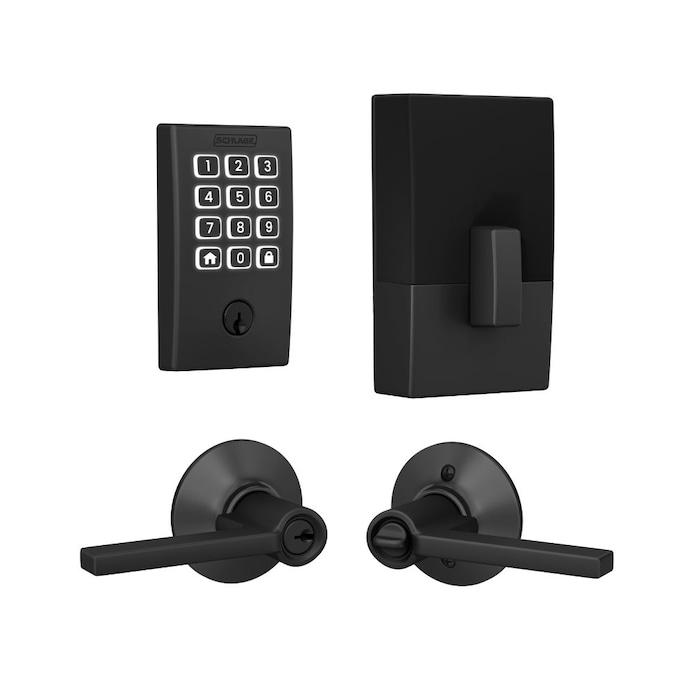 Schlage Arrive Century Matte Black Electronic Deadbolt and Latitude Keyed Entry Door Handle Bundle