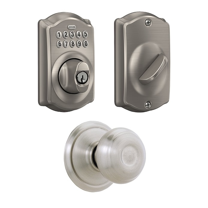 Schlage Camelot Satin Nickel Electronic Deadbolt and Georgian Knob Bundle