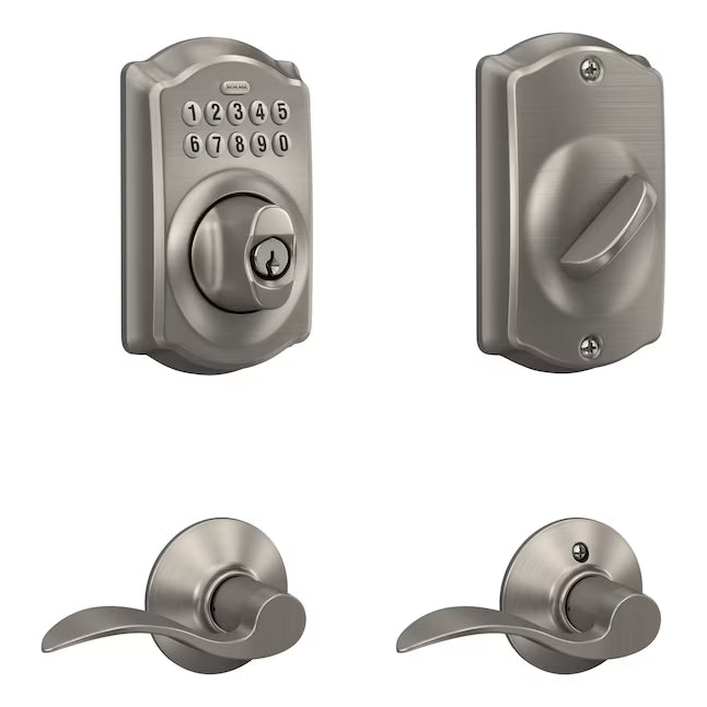 Schlage Camelot Satin Nickel Keypad Electronic Deadbolt and Handle Lock