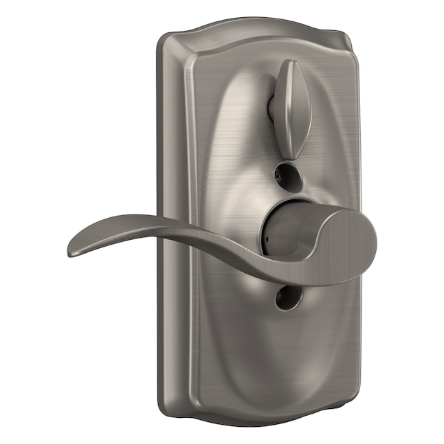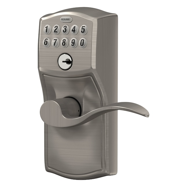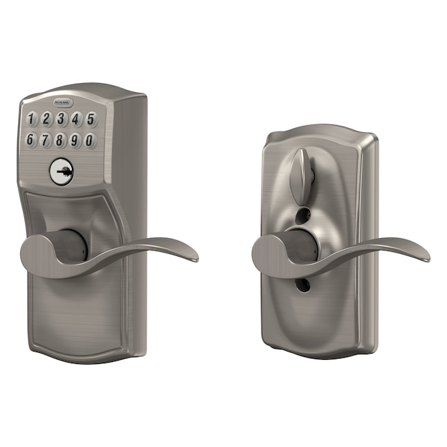 The Schlage Accent Keypad Lever with Camelot Trim in Satin Nickel is perfect for use on front doors, garage entry doors, and side and back doors. With a keypad lever, you can control entry to your home more easily and securely, and our Flex – Lock feature allows you to set the lock to automatically re – lock after 5 seconds of inactivity. No more hiding keys under the doormat or losing track of copies – just use access codes that can be created or deleted in seconds. The Accent lever is widely popular for its elegant wave – like design that effortlessly matches a home’s style without overshadowing it, while the Camelot trim’s scalloped architectural details add charm to any home – especially when wrapped in our versatile Satin Nickel finish. Plus, it’s been designed and tested with strength and durability in mind.