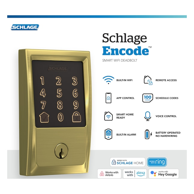 ANYWHERE ACCESS: With built-in WiFi compatibility, you can easily and securely connect your Schlage Encode Deadbolt to your home WiFi network to control and monitor your home from anywhere with the Schlage Home app