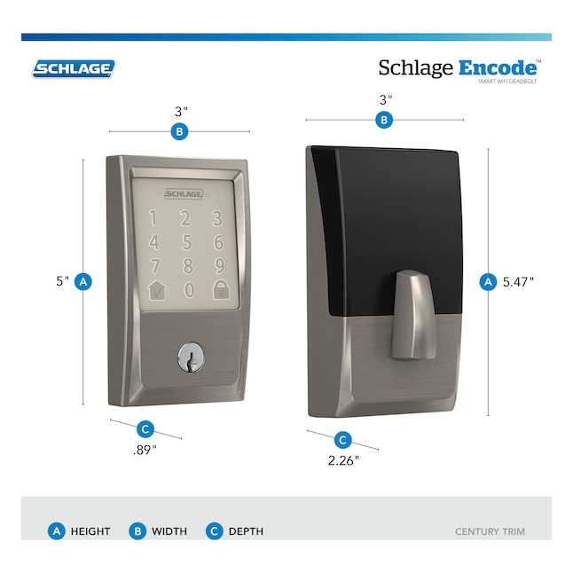 Schlage Encode Century Satin Nickel Smart Wi-Fi and Bluetooth Touchscreen Keypad Electronic Deadbolt Lock