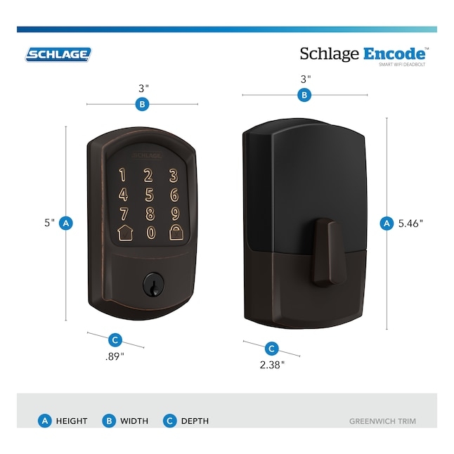 Schlage Encode Greenwich Aged Bronze Smart Wi-Fi and Bluetooth Touchscreen Keypad Electronic Deadbolt Lock