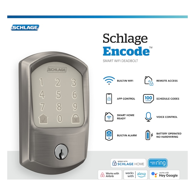 ANYWHERE ACCESS: With built-in WiFi compatibility, you can easily and securely connect your Schlage Encode Deadbolt to your home WiFi network to control and monitor your home from anywhere with the Schlage Home app