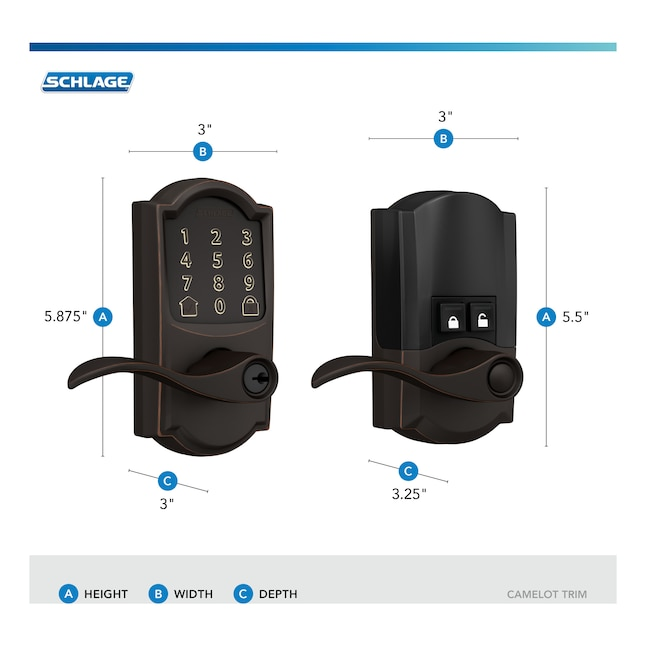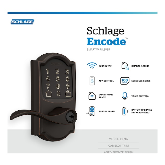 Schlage Encode Lever Camelot-Accent Aged Bronze Smart Wi-Fi and Bluetooth Touchscreen Keypad Electronic Handle Lock
