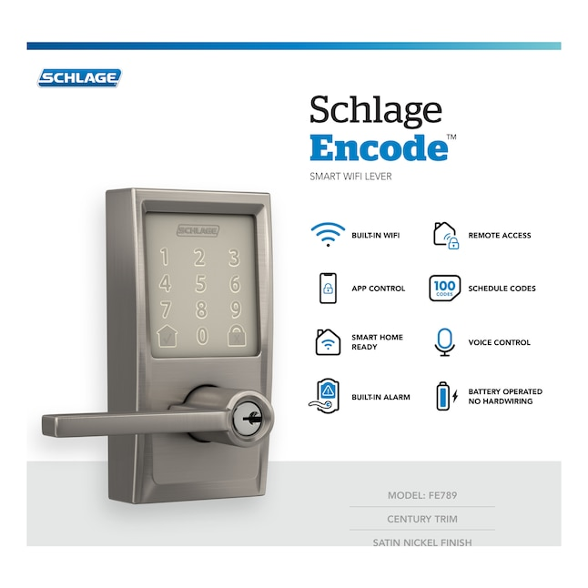 Schlage Encode Lever Century-Latitude Satin Nickel Smart Wi-Fi and Bluetooth Touchscreen Keypad Electronic Handle Lock