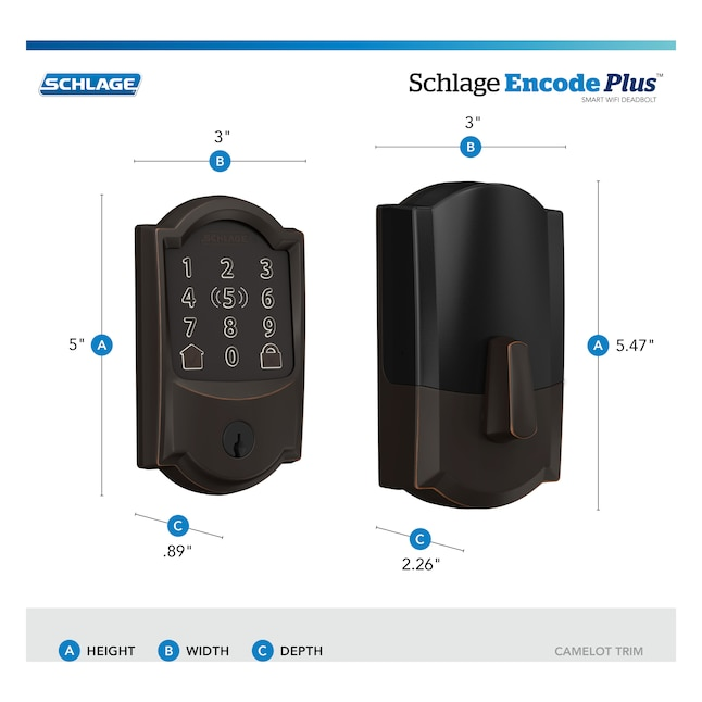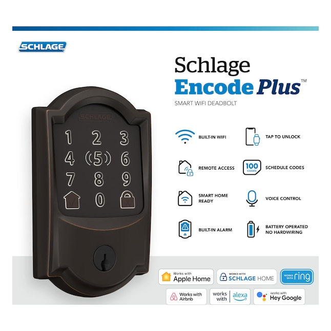 Schlage Encode Plus Camelot Aged Bronze Smart Wi-Fi and Bluetooth Touchscreen Keypad Electronic Deadbolt Lock