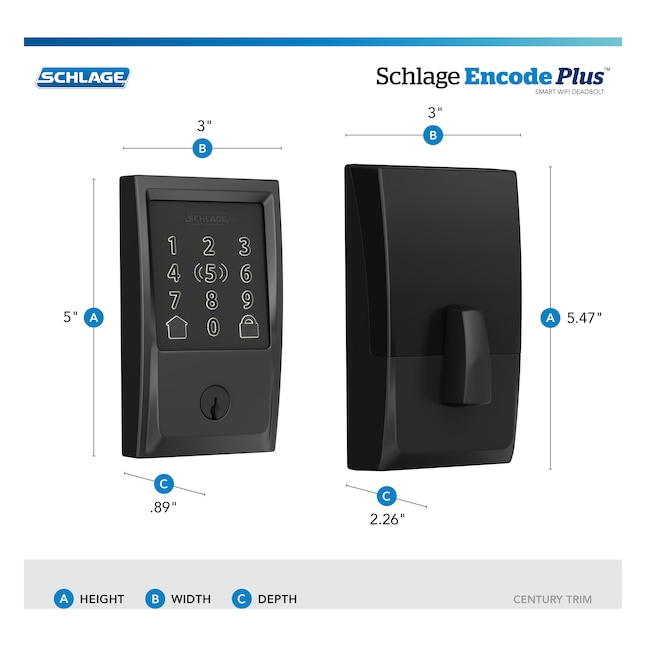 Schlage Encode Plus Century Matte Black Smart Wi-Fi and Bluetooth Touchscreen Keypad Electronic Deadbolt Lock