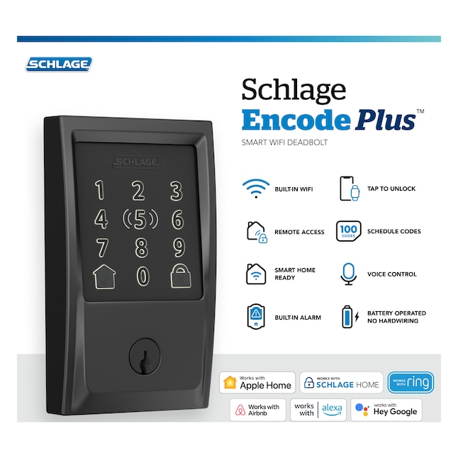 ANYWHERE ACCESS: With built-in WiFi compatibility, you can easily and securely connect your Schlage Encode Plus lock to your home WiFi network to control and monitor your home from anywhere with the Schlage Home app