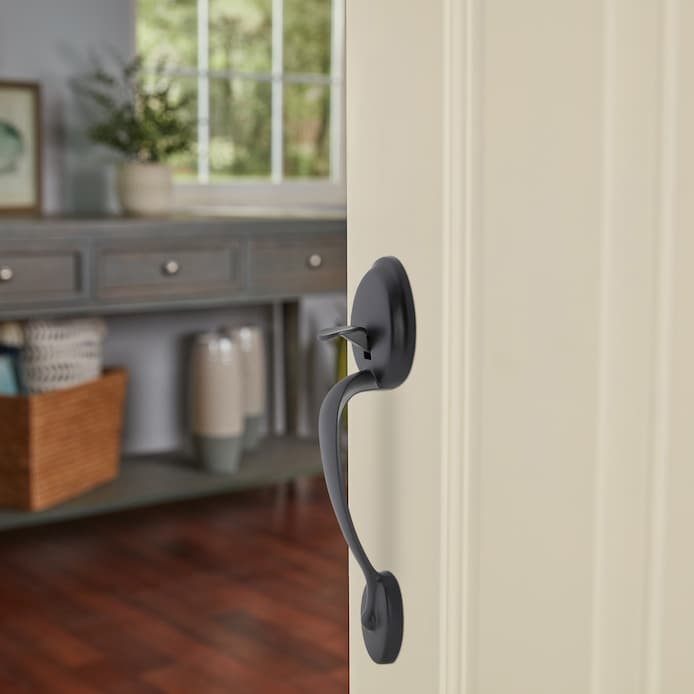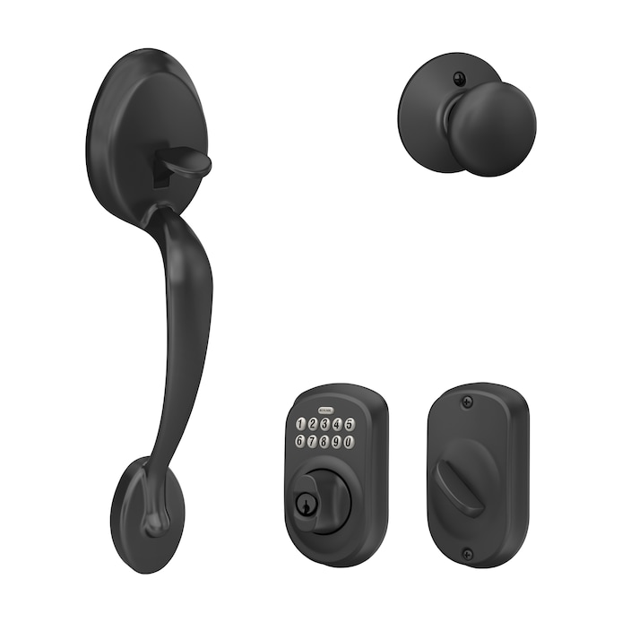 Increase safety and protection at your home’s first point of entry with the Schlage Plymouth Matte Black Electronic Keypad Deadbolt and Handleset Bundle. The Plymouth Matte Black Entry Door Handleset offers premium construction combined with a sleek design and is ideal to pair with a mechanical or electronic keypad deadbolt lock for a customized entryway. The Plymouth Matte Black Single Cylinder Electronic Deadbolt Lighted Keypad allows you to lock and unlock your door without using a key and is equipped with silicone rubber, wear-resistant buttons with LED backlight to make access safe and easy.