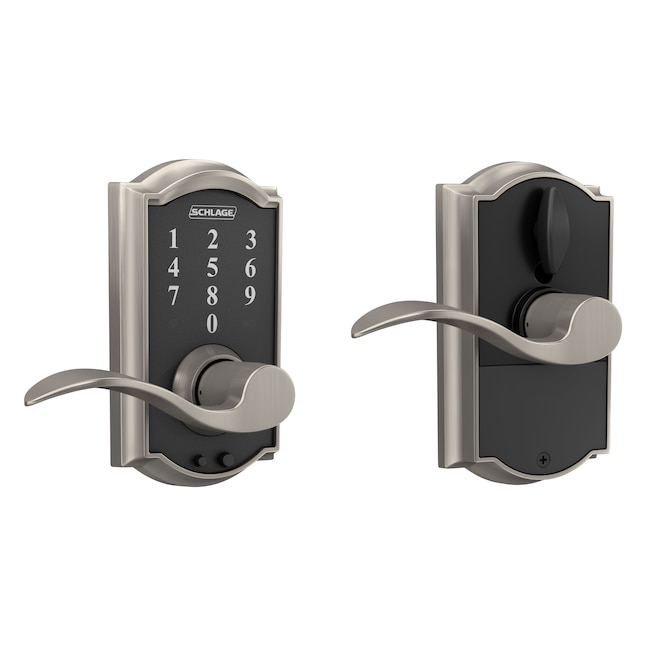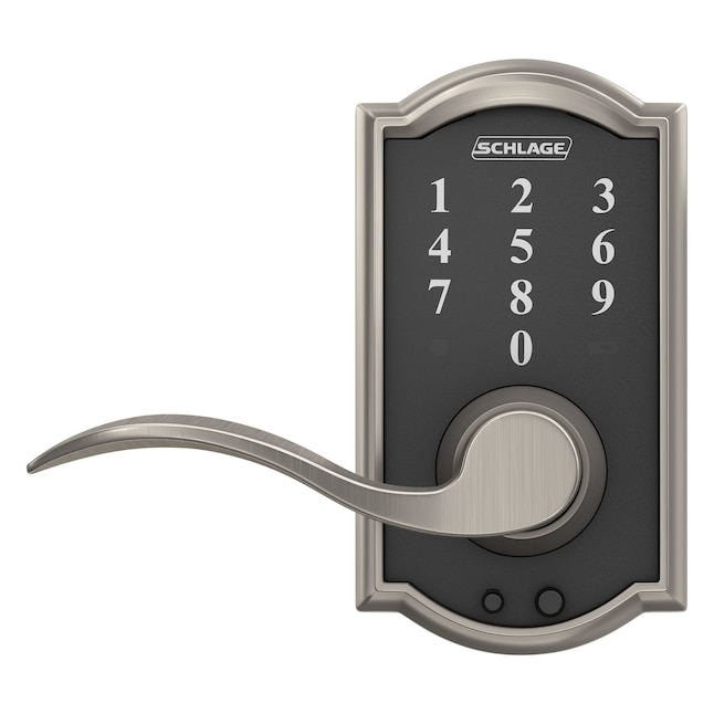 With the Schlage Touch™ Keyless Touchscreen Accent Lever with Camelot Trim in Satin Nickel, there’s no key to lose, no re-keying or cutting new keys – no keys at all, thanks to our cylinder-free design. You can finally go for a run or take the dog for a walk without juggling keys or stuffing them in your sock. All in a slim profile and stylish trim that pairs perfectly with interior hardware. The Accent lever is widely popular for its elegant wave-like design that effortlessly matches a room’s style without overshadowing it, while the Camelot trim’s scalloped architectural details make any room charming and approachable, especially when wrapped in our versatile Satin Nickel finish. Plus, it’s been designed and tested with strength and durability in mind.