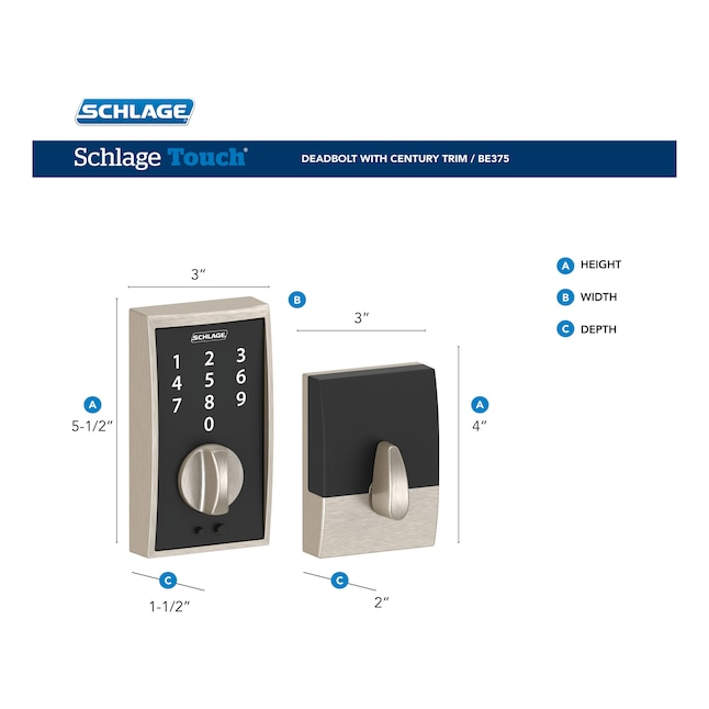 Schlage Touch Century Satin Nickel Touchscreen Keypad Electronic Deadbolt Lock