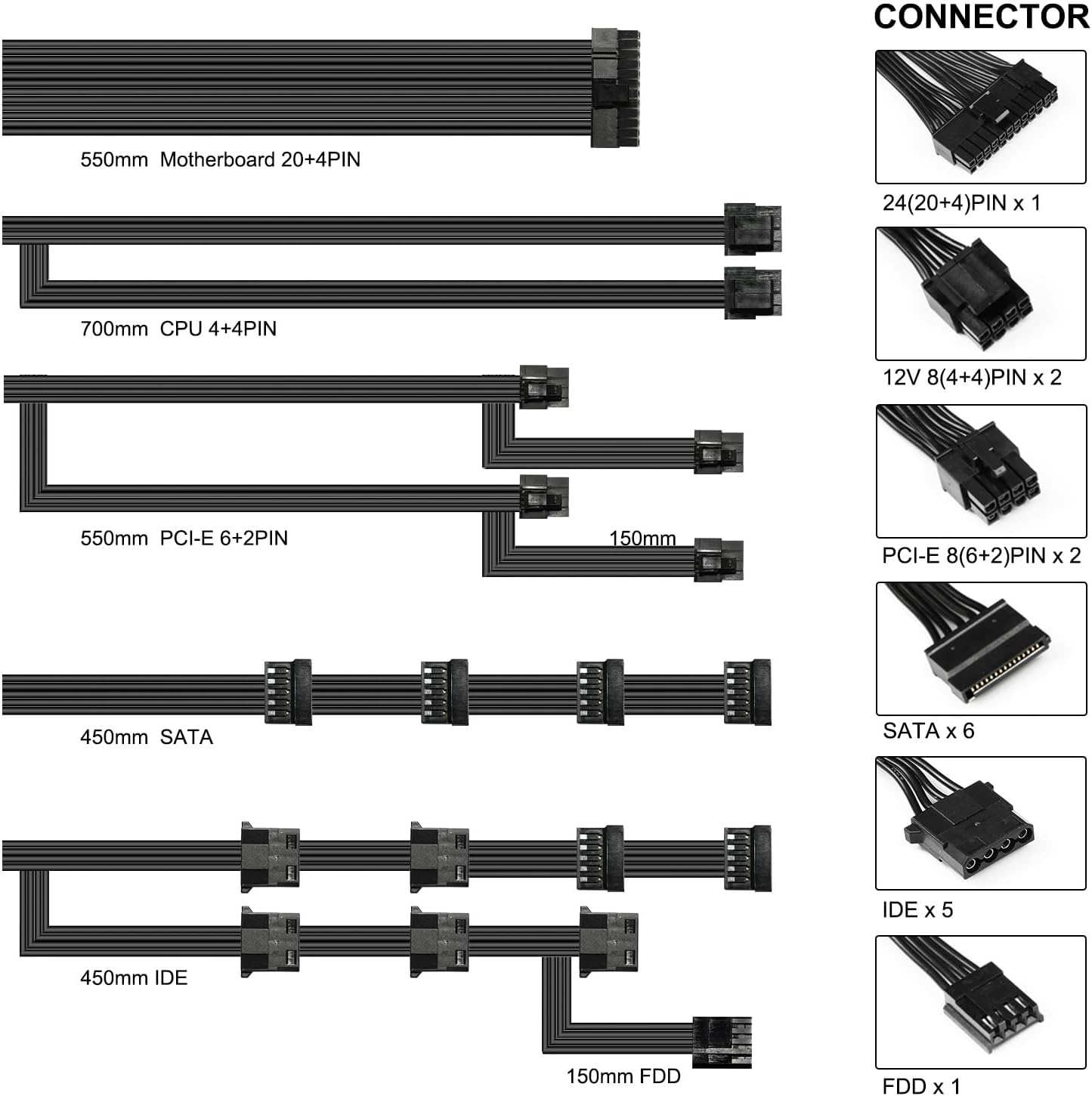 - Four PCI-E 6+2 Pin Connector: All wires can be separated from the power supply, making the inside of the case look cleaner. Four 12V 6+2 Pin cables support 40 series graphic card