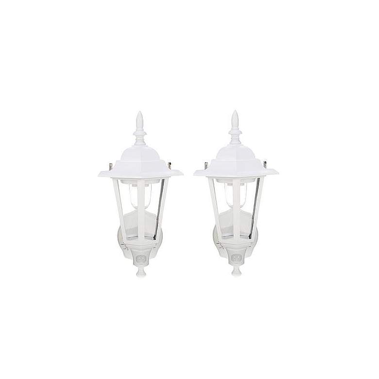 Set of 2 15" Battery Motion Sensor White Outdoor Wall Lights