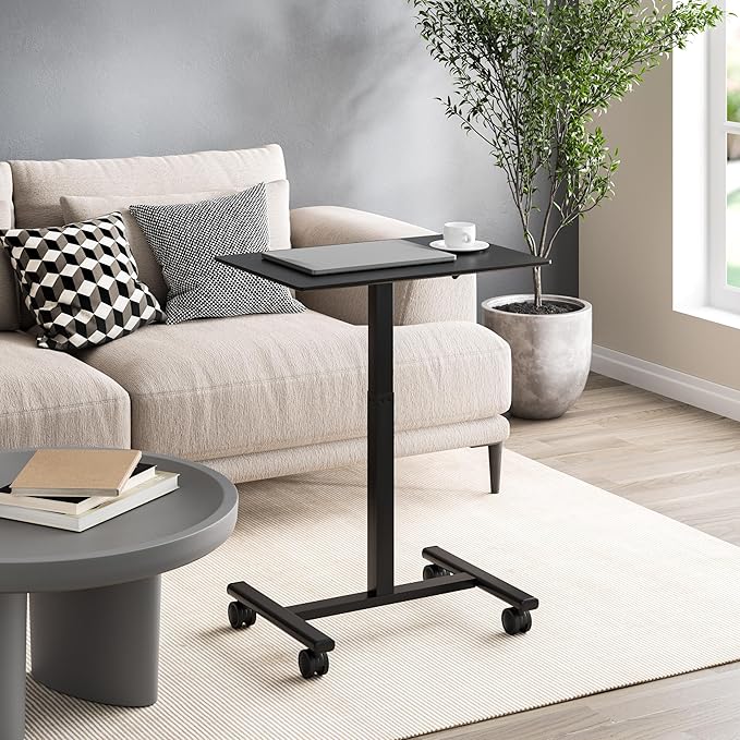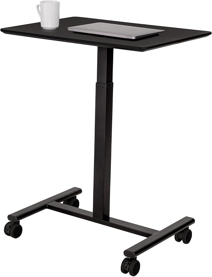 Seville Classics Airlift Height Adjustable Pneumatic Laptop Sit Stand Desk Mobile Rolling Cart, Computer Workstation for Home Office, Classroom, Black, 25.6" Desktop