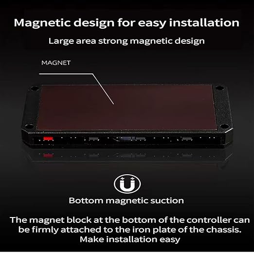 - 【Magnetic Back Design】This 1 to 9 case fan hub is magnetic design, which can be attached to the metal surface of pc case without double-sided tape, very convenient to place on the computer case and put anywhere you want to.