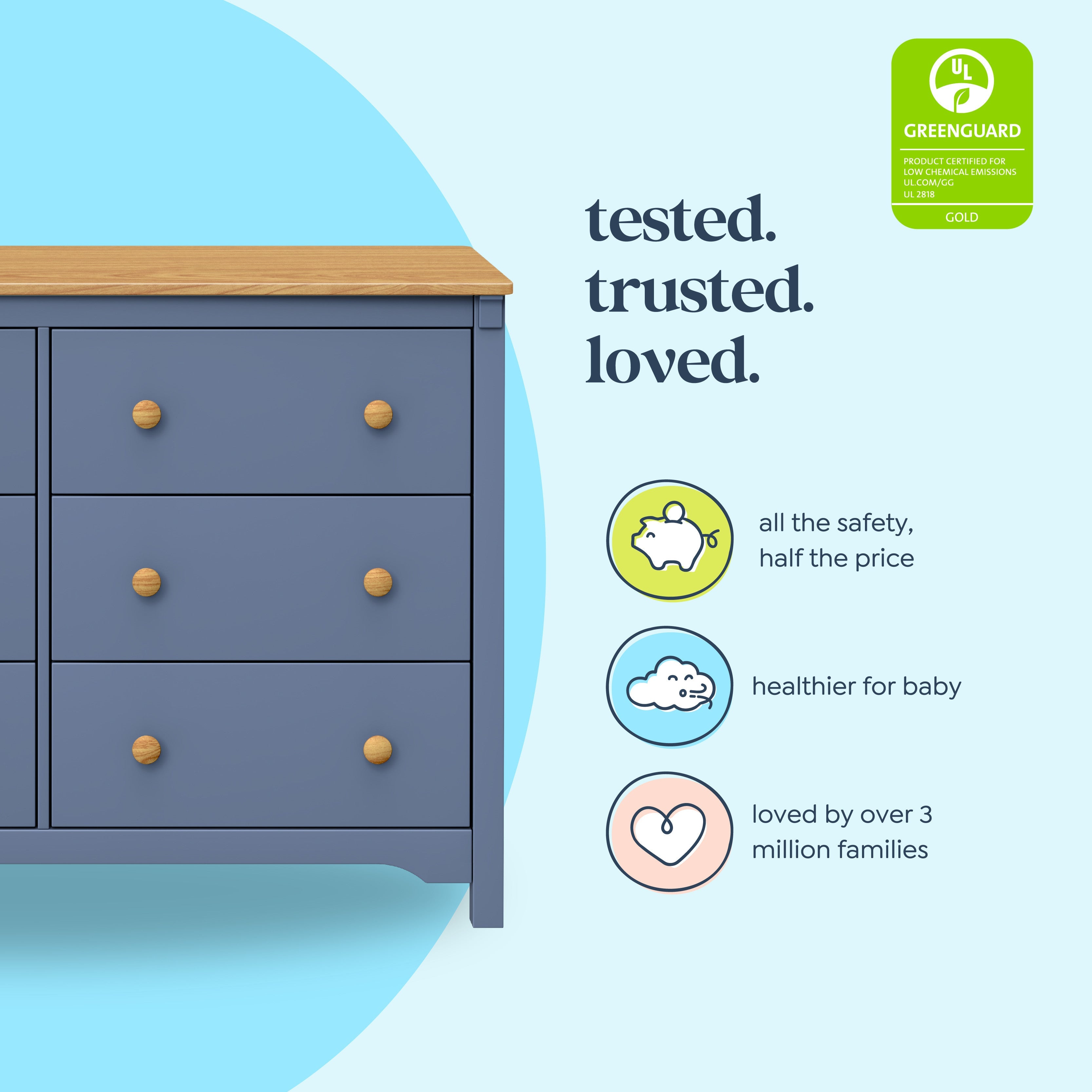 The Shea 6-Drawer Dresser is just as practical as it is adorable. Made with quality materials, this dresser features ample storage space, playful wood detailing, and rustic flair that makes it the perfect companion to the Shea 4-in-1 Convertible Crib.