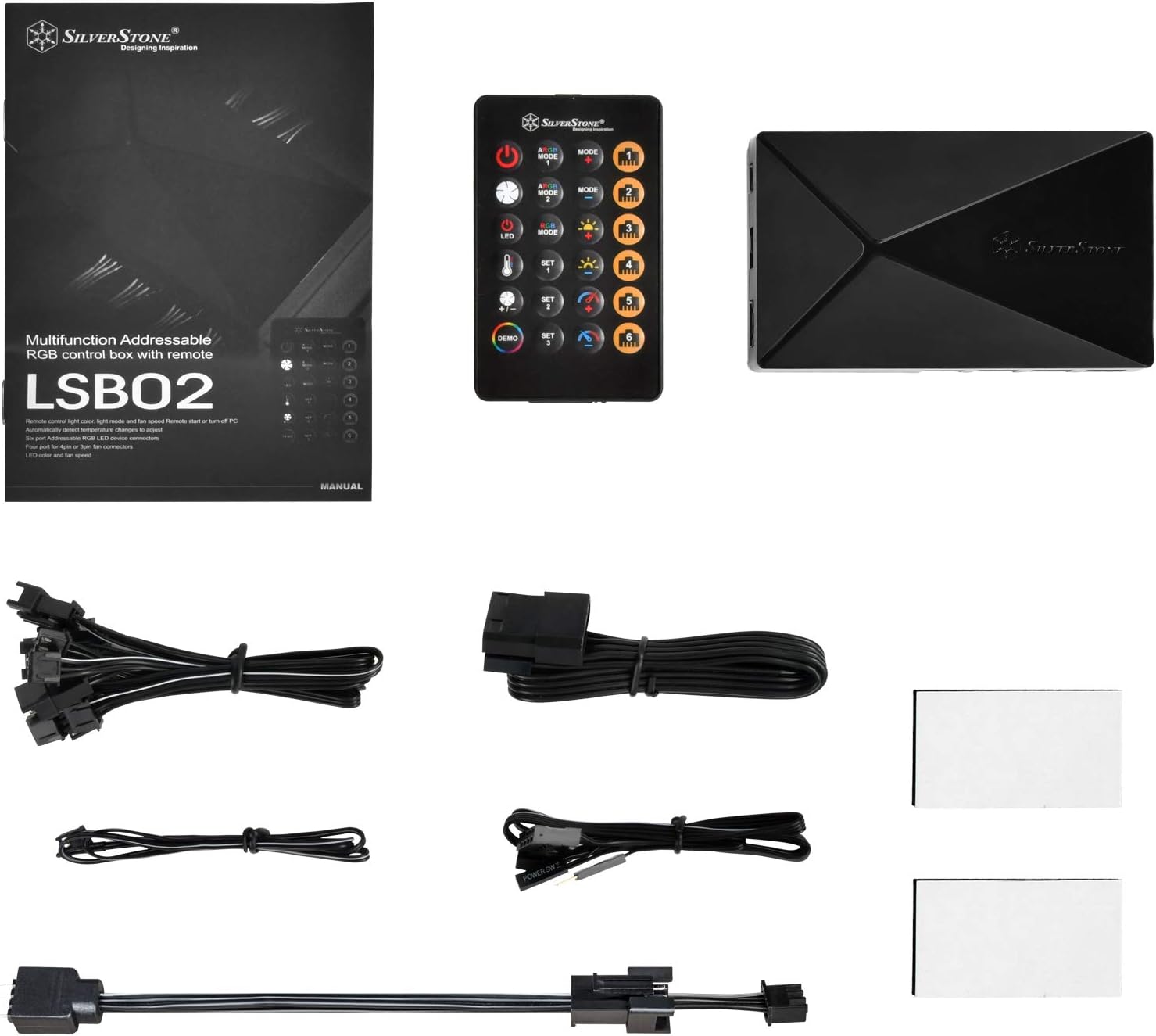 SilverStone Technology LSB02-E Addressable RGB LED & Fan Hub with Remote & Thermal Temperature Probe, SST-LSB02-E